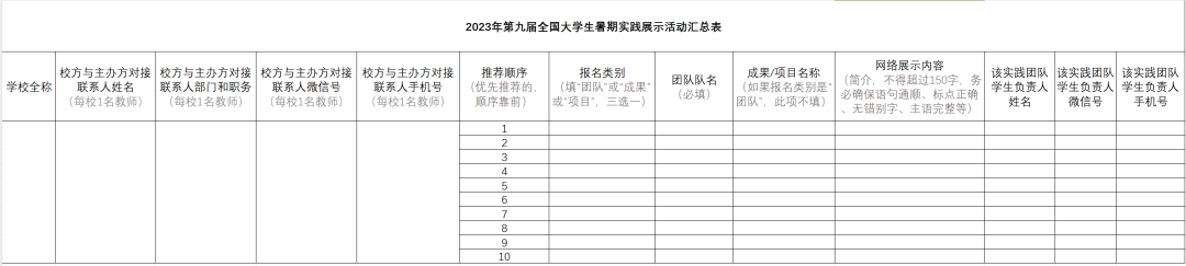 全国大学生暑期实践展示活动旨在深入挖掘和展示大学生暑期实践中的优秀成果,充分发挥优秀团队的示范引领作用,进一步激发大学生了解国情、服务社会的主动性,培养创新精神,提升责任感和使命感,引导大学生不断探求社会主义核心价值观的深刻内涵,聚集践行社会主义核心价值观的强大力量。