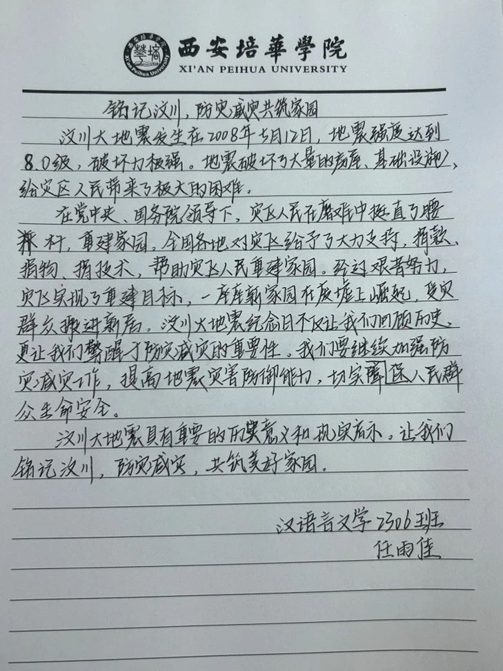 通过这次主题教学活动,同学们不仅对汶川地震有了更深的理解,而且也更深刻地认识到了生命的可贵,我们要学习更多技能和知识,在关键时刻守护我们的生命安全。会议结束后许多同学也有了深刻的感悟。