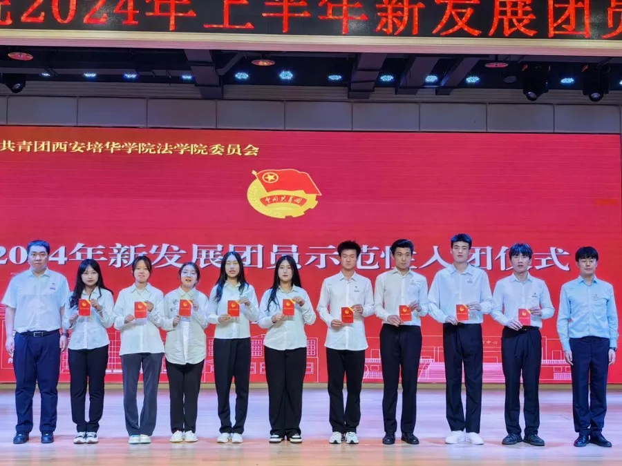 为提升团员先进性、光荣感,组织团员、带动青年积极追求政治进步,为新时代现代化挺膺担当,6月5日晚,法学院2024年新发展团员示范性入团仪式在恒友楼四楼报告厅顺利举行。此次活动的召开旨在进一步弘扬共青团精神,激发团员青年的爱国热情与责任感,同时正式欢迎新一批团员加入这个充满朝气与活力的集体。