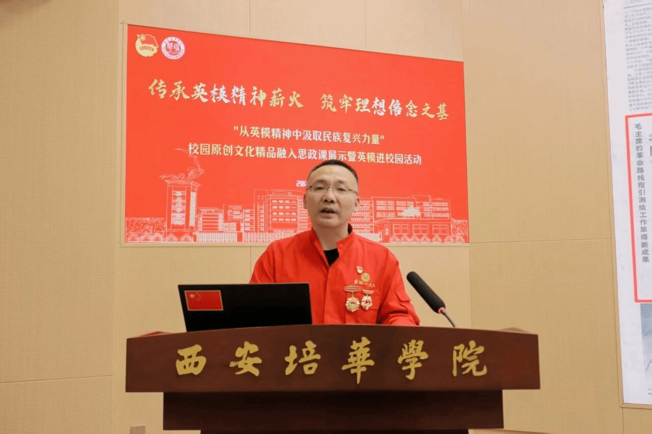 (4)校团委特邀原天安门国旗护卫队海军护旗手、赤心国旗护卫志愿服务队队长曾嵘开展 “擎旗护华夏,赤心育新人” 主题宣讲;同时联合关工委邀请自然资源部第一大地测量队纪委书记任秀波举办 “传承英模精神薪火,筑牢理想信念之基” 英模进校园活动,两场宣讲覆盖师生超 1200 人次。