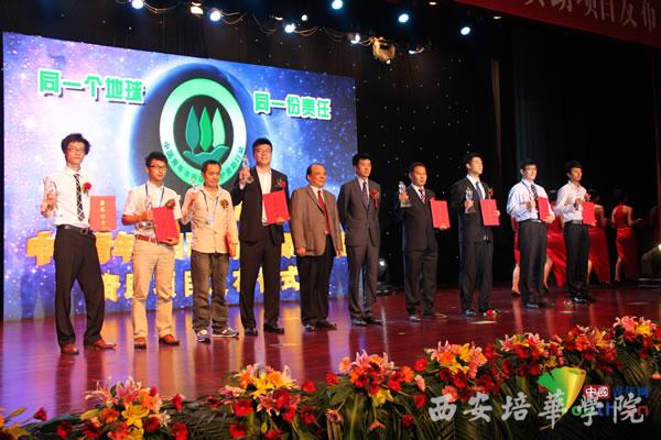 中国环境文化促进会副秘书长江夏、丰田汽车(中国)投资有限公司执行副总经理董长征为获资助代表颁发纪念杯、荣誉证书。
