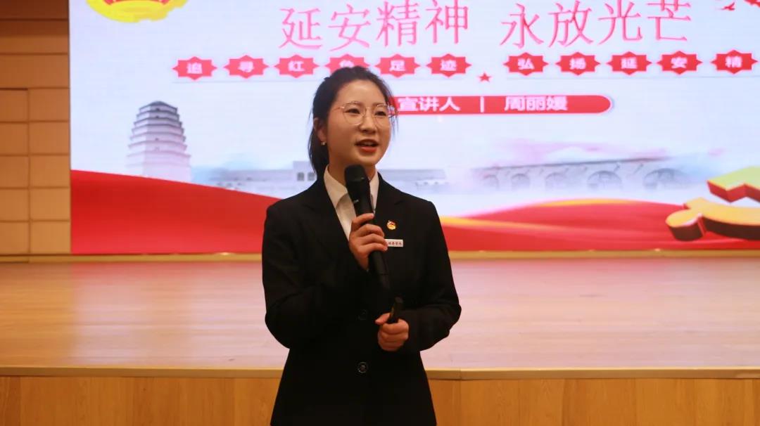 周丽媛同学以“延安精神 永放光芒”为主题。分别从延安精神的形成,延安精神的内容和延安精神的践行三方面进行讲解。讲述了新时代大力弘扬延安精神,应该始终坚持政治引领,做向党中央看齐的表率。始终牢记初心使命,做为民服务的表率。始终坚持实事求是,做勇于担当的表率。始终坚持艰苦奋斗,做严以律己的表率。始终坚持刻苦学习、学以致用。