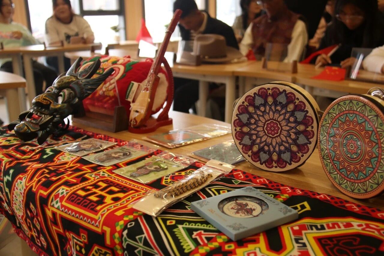 活动尾声,师生并肩合影定格美好瞬间,一场充满民族意趣的创意纪念相册制作环节随即温馨开启。同学们围坐在一起,认真挑选少数民族主题贴纸与装饰素材,以巧思为笔、创意为墨,沉浸式投入创作:有人将苗族银饰纹样贴纸细致贴入相册内页,让精巧银韵跃然纸上;有人把藏族邦典图案拼贴在相册扉页,将浓郁民族风情徐徐铺展;还有人将傣族孔雀羽贴纸叠映在合影旁的留白处,让灵动美感与珍贵记忆相映成趣。