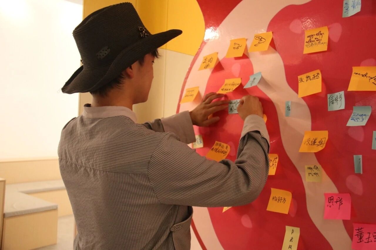 活动伊始,刘锋书记、各职能部门老师与学生代表们共同执笔,将名字留在一张张便签上,共同贴满“石榴墙”。这面以石榴为形的心愿墙,寓意着各民族像石榴籽一样紧紧相拥。师生们以签名为约,凝聚起同心共筑民族团结的坚定信念,让团结的种子在这一刻深深扎根于每个人心中。