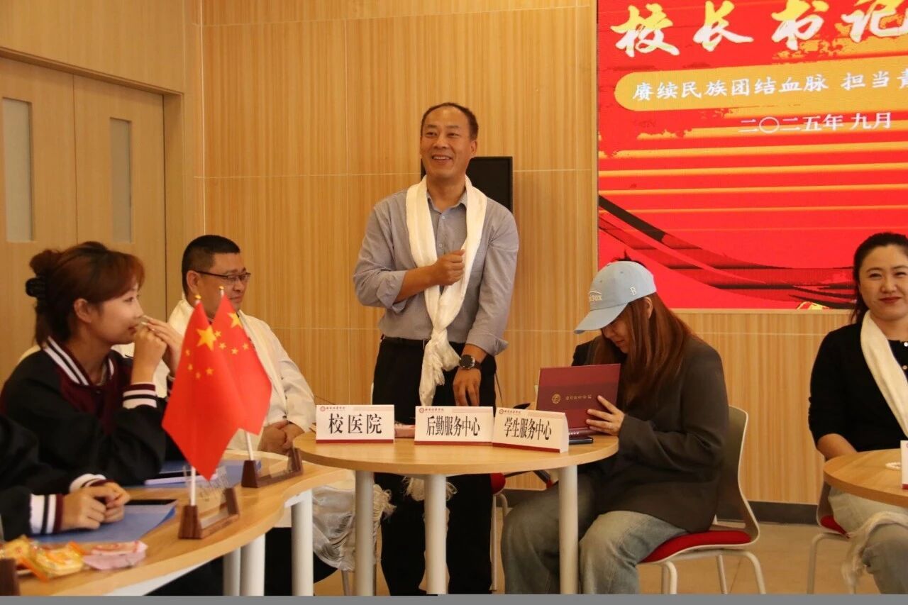 为铸牢中华民族共同体意识,促进校园各民族学生交往交流交融,2025年9月29日校团委举办“赓续民族团结血脉,担当青年复兴使命”校长书记接待日主题座谈会。校领导、职能部门负责人与各学院少数民族学生代表齐聚一堂,共叙情谊,共绘民族团结的同心圆。
