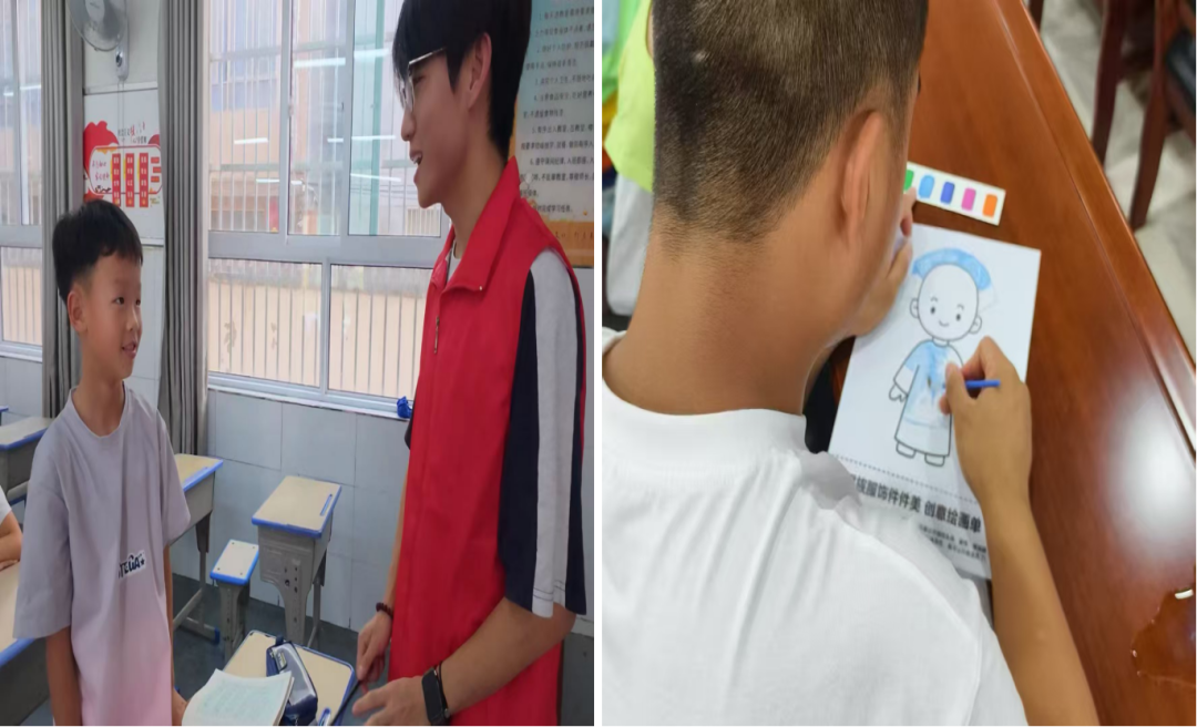 智启童心 "扇"动未来从零件到 “清凉神器”,手工风扇里藏着科技奥秘。智 “芯” 先锋队成员陈俊昊为小朋友讲解了风扇的科学知识和手工风扇的制作方法。团队成员带领大家一起,齐心协力拼接零件,遇到困难及时解决。专注的眼神、互相帮助的瞬间、成功运转的欢呼,教室里满是热烈的氛围。