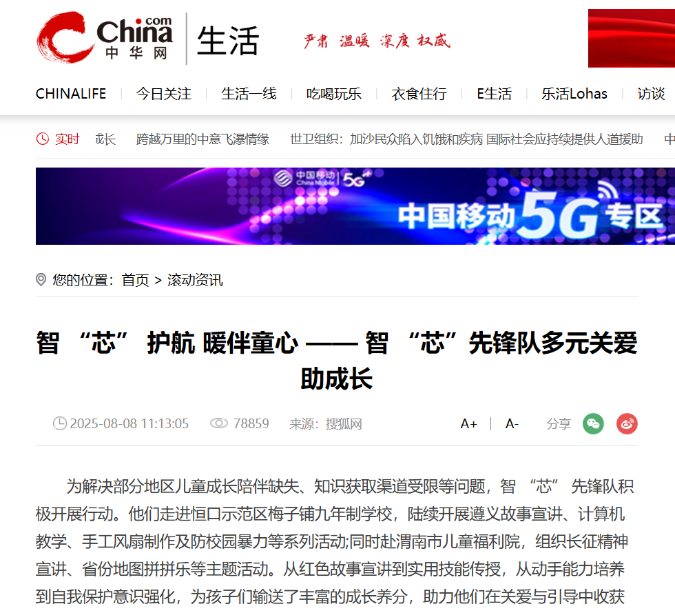 为解决部分地区儿童成长陪伴缺失、知识获取渠道受限等问题,智 “芯” 先锋队积极开展行动。他们走进恒口示范区梅子铺九年制学校,陆续开展遵义故事宣讲、计算机教学、手工风扇制作及防校园暴力等系列活动;同时赴渭南市儿童福利院,组织长征精神宣讲、省份地图拼拼乐等主题活动。从红色故事宣讲到实用技能传授,从动手能力培养到自我保护意识强化,为孩子们输送了丰富的成长养分,助力他们在关爱与引导中收获知识、快乐与成长力量。