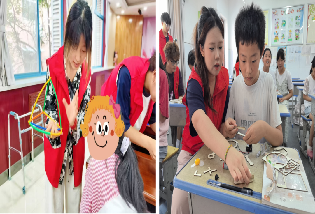 科技点亮生活,更助孩子突破现实束缚。智 “芯” 先锋队成员蒲婉晴、谢雨哲用 VR 技术,为 “星星的孩子们” 打造 “VR 眼镜探秘” 沉浸式活动。孩子们动手制作简易 VR 眼镜,感受科技魅力。这些眼镜如小窗,带他们看见更远的世界,在天马行空中自由徜徉。