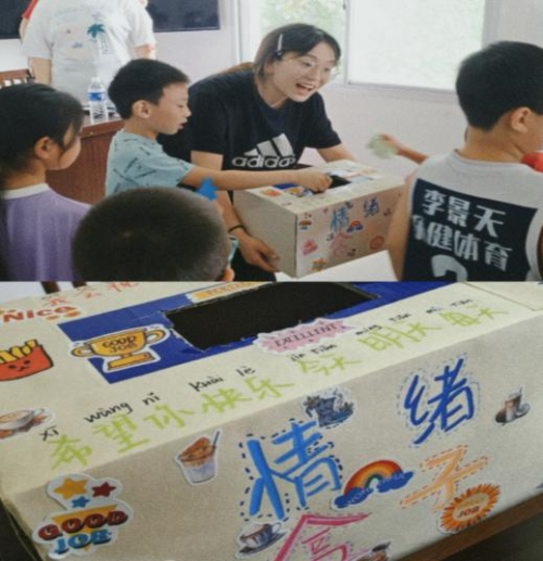 “文心疗愈”通过“情绪盒子”情绪温度计”等互动形式展开。孩子们将喜怒哀乐写在纸条上投入“盒子”,用彩笔在“温度计”上标注情绪强度,在轻松的游戏中学会表达感受。“原来委屈可以说出来,开心值得分享”,帮助他们建立稳定的情绪表达系统。