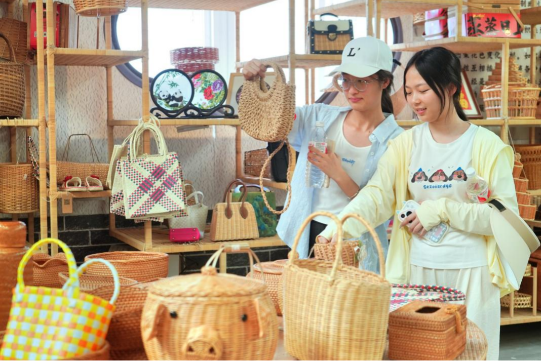 “藤编最难的是力道把控”。一位老师傅演示道,“手劲重了藤条会断,轻了又无法定型”。他手中的藤条仿佛被赋予了鲜活的生命,在指尖的舞动下,渐渐成型为一个精巧别致的收纳篮,引得队员们连连发出惊叹。