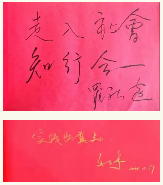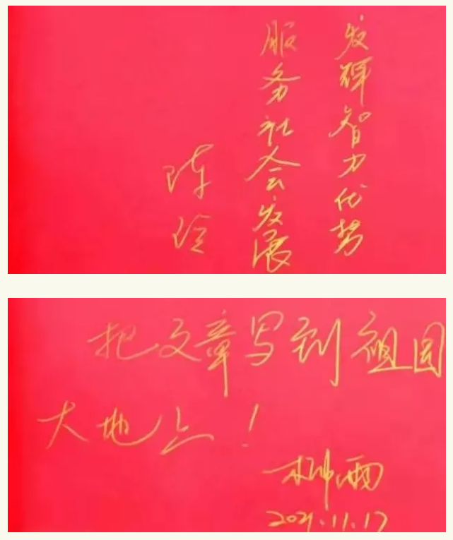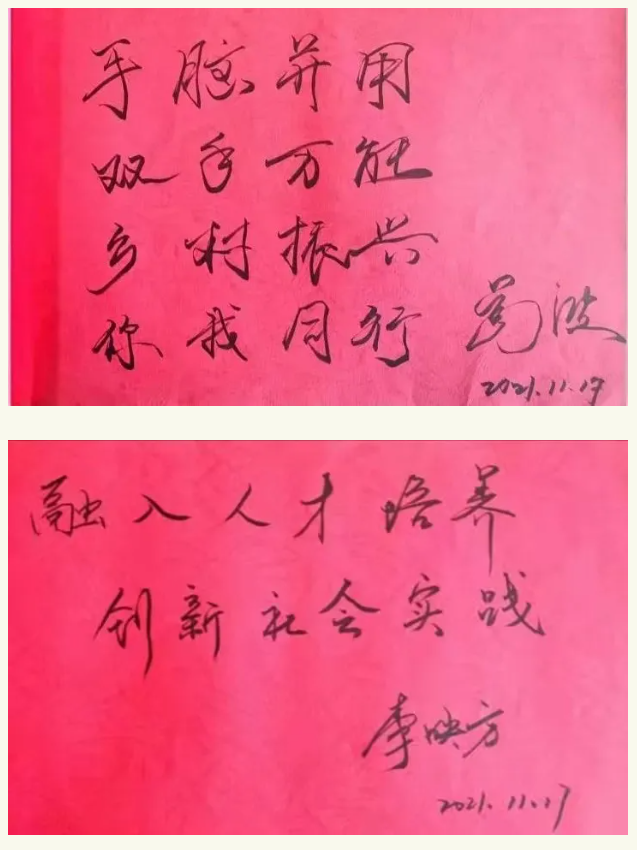 ▲西安培华学院理事长姜波博士参观成果展并题字
