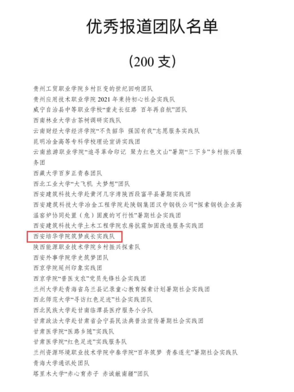 ▲西安培华学院团委荣获2021年“镜头中的三下乡”