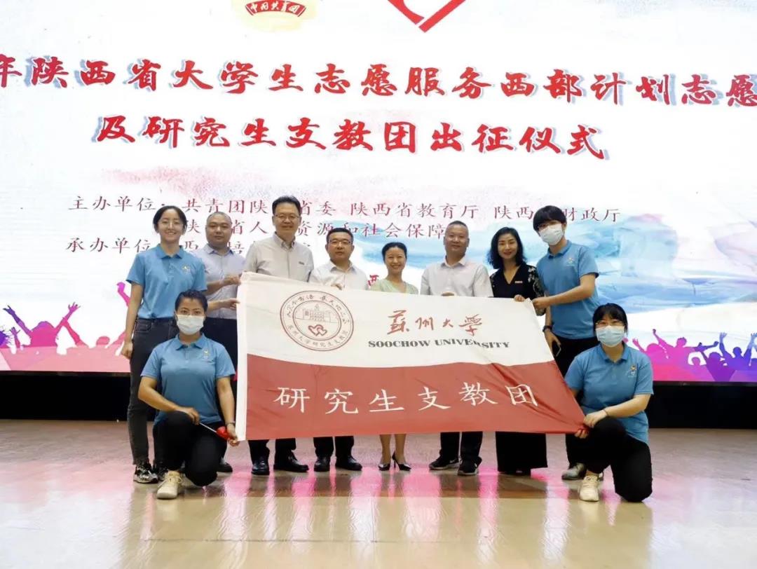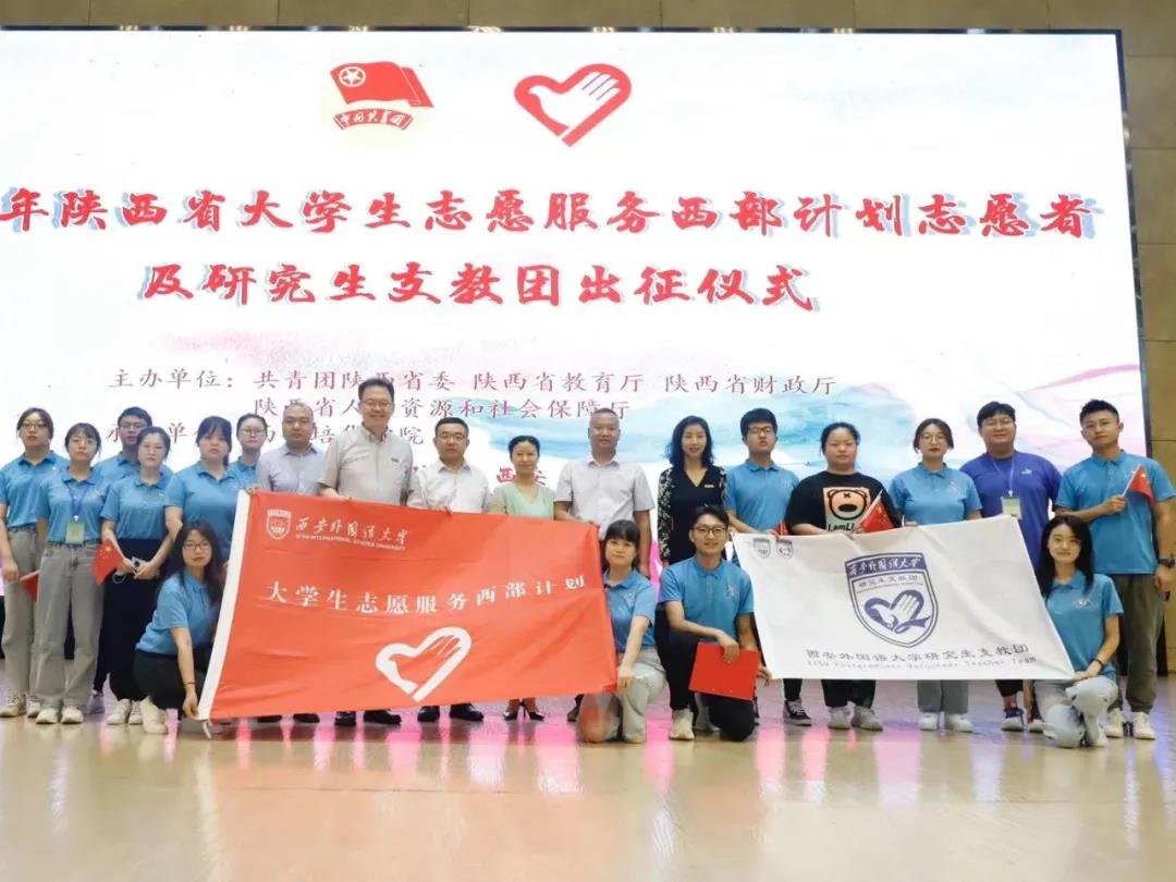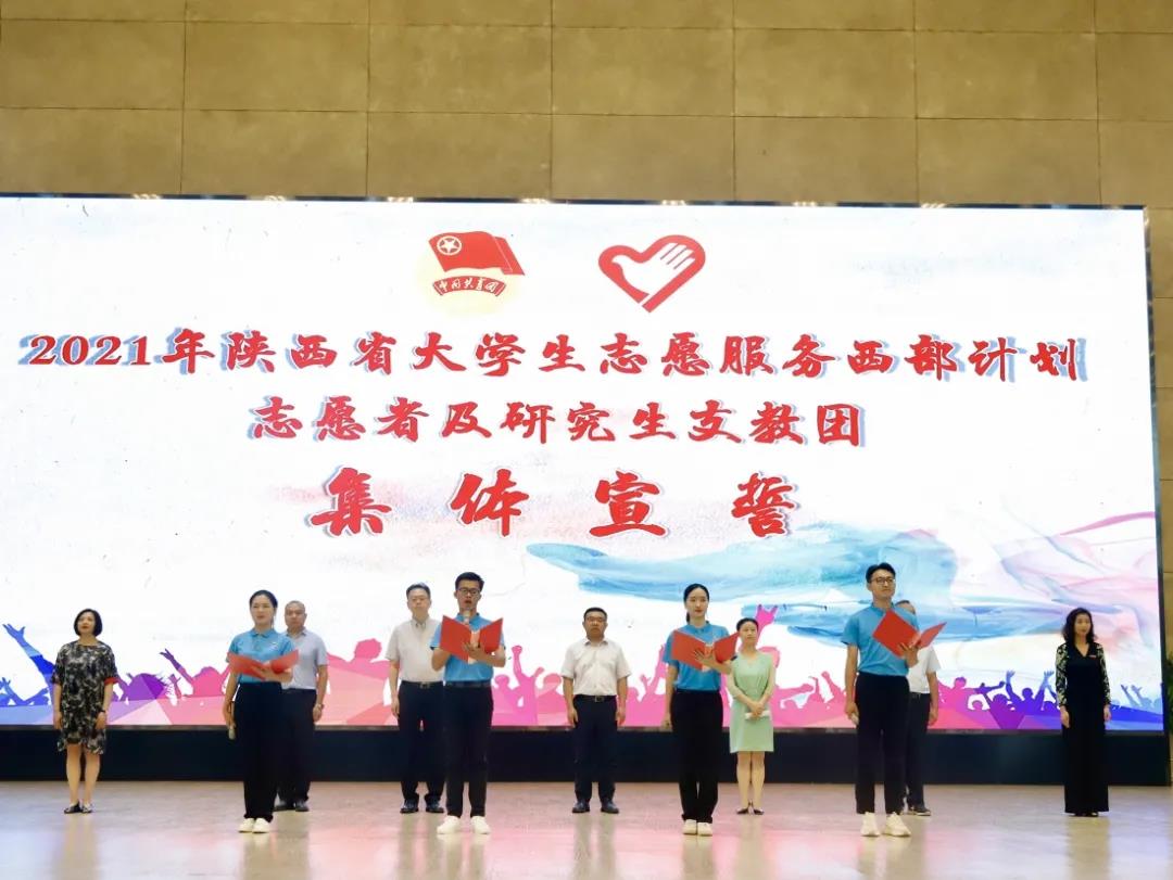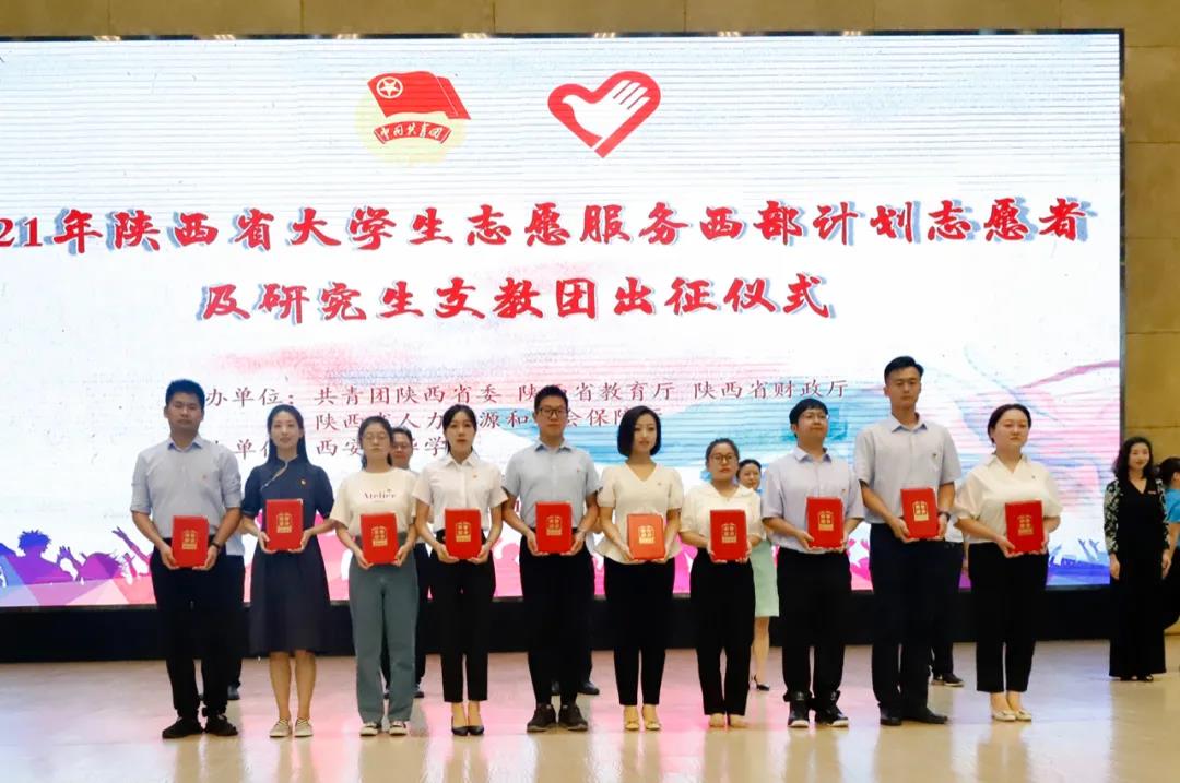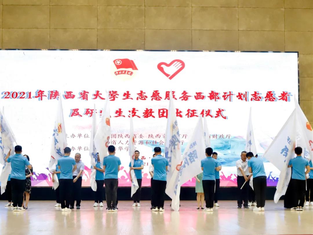 在仪式上,省教育厅副厅长高岭为2021年陕西省大学生志愿服务西部计划陕西服务总队授旗;与会领导共同为2020-2021年度西部计划先进集体和先进个人颁奖、为2021年陕西省大学生志愿服务西部计划研究生支教团,各市、县(区)服务分队授旗。