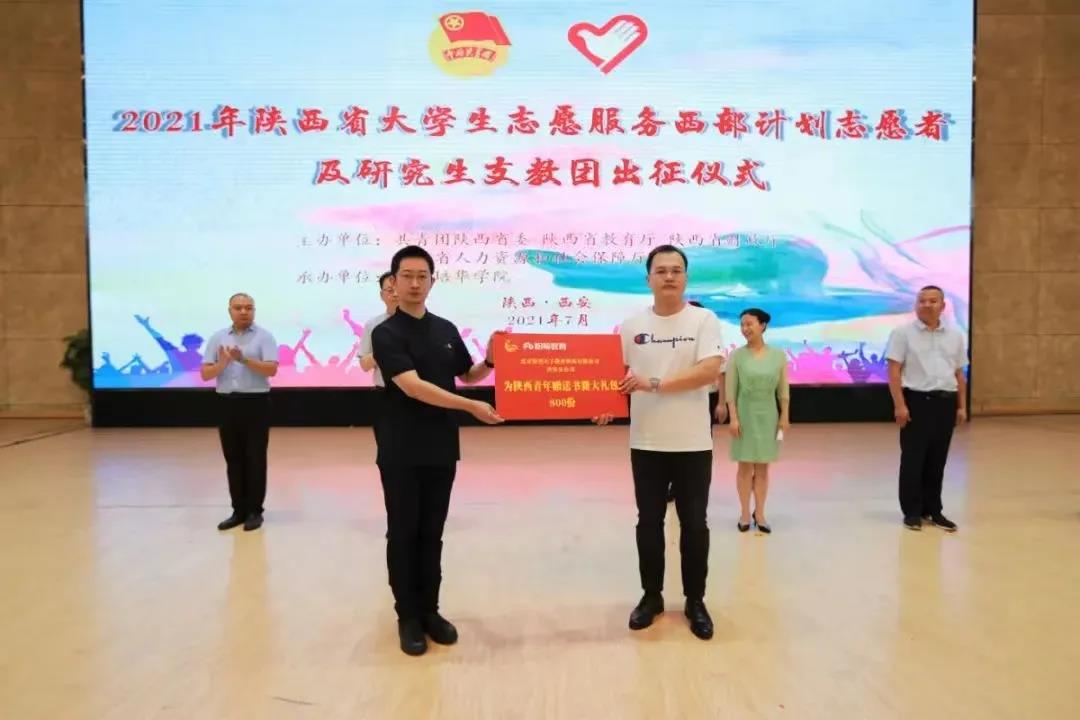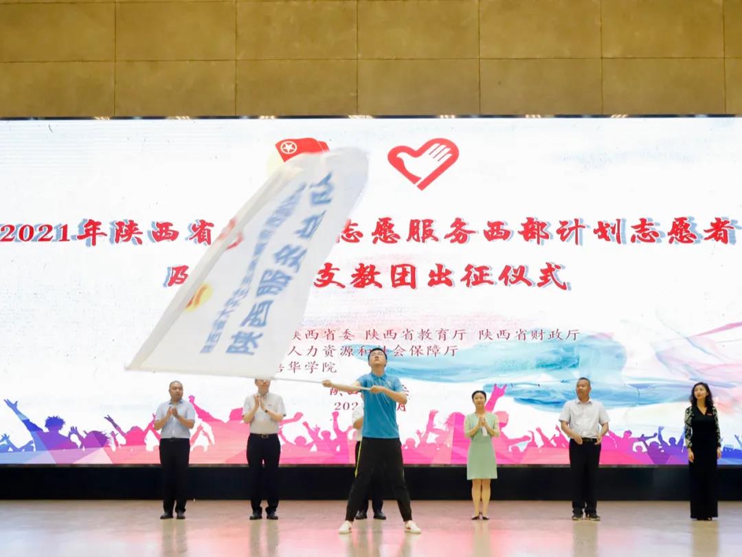 7月23日,由团省委、省教育厅、省财政厅、省人社厅共同主办的2021年陕西省大学生志愿服务西部计划及研究生支教团出征仪式在西安培华学院举行。省教育厅副厅长高岭,共青团陕西省委副书记贾琳,西安培华学院理事长姜波,财政厅行政处四级调研员丁武强,省人社厅事业单位人事管理处副处长魏伟,西安培华学院副校长、党委副书记姚文静,团省委青年社会事业部二级调研员陈晓华和各市、县(区)团委、西部计划项目办,部分高校团委、项目办及新招募西部计划志愿者、研究生支教团成员共计700余人参加仪式。