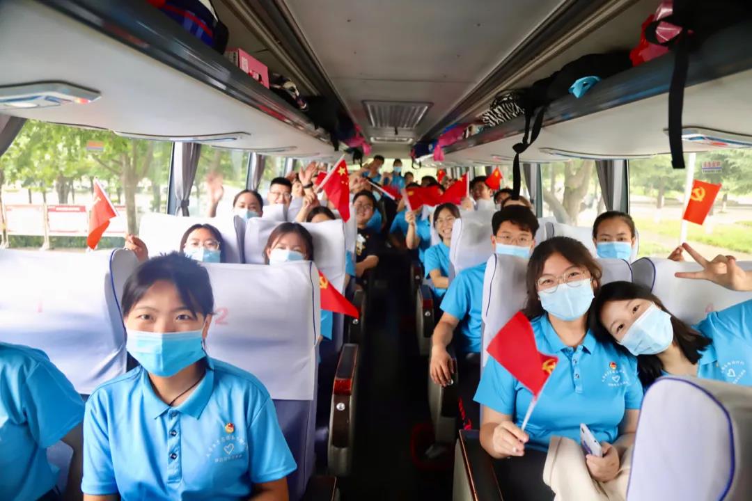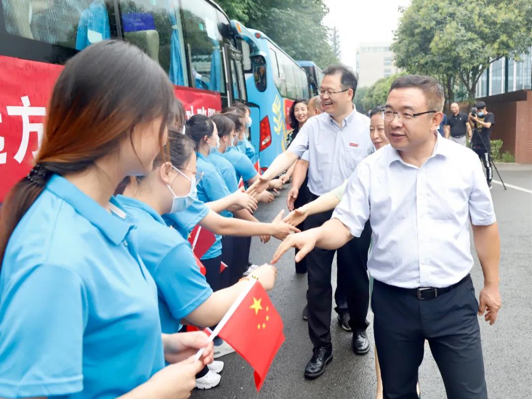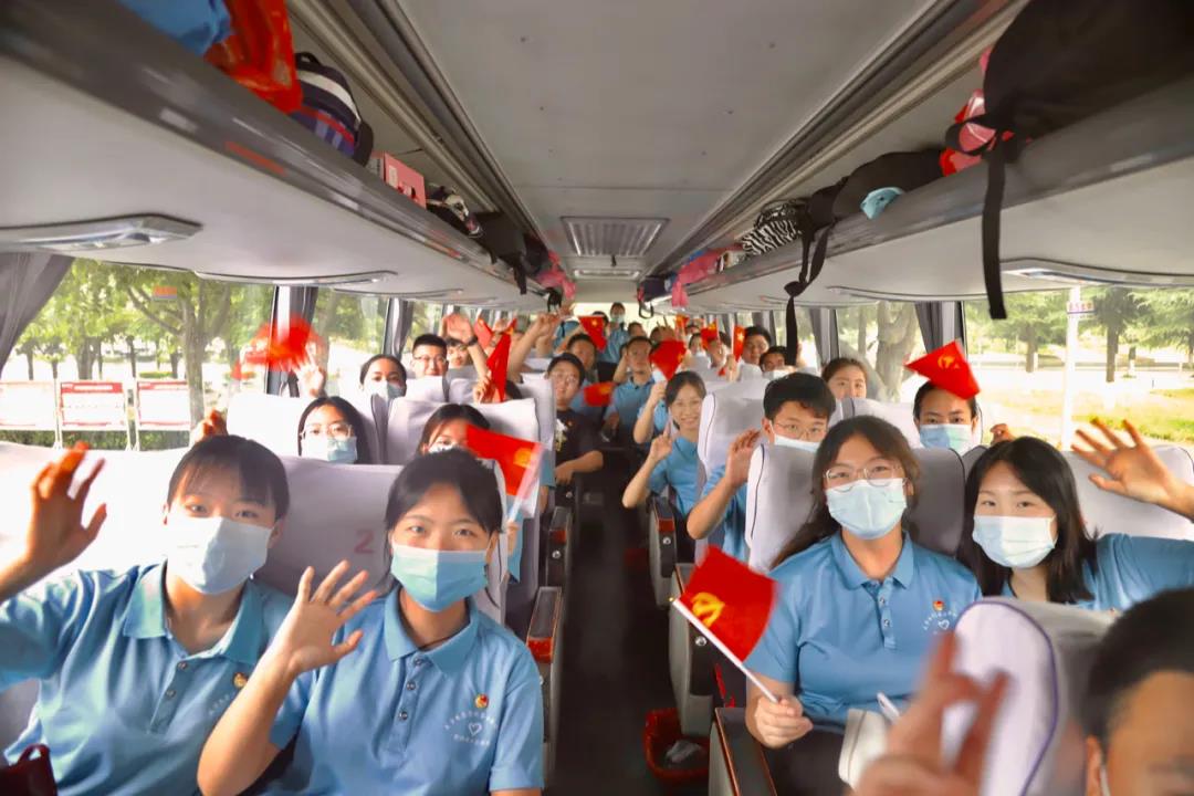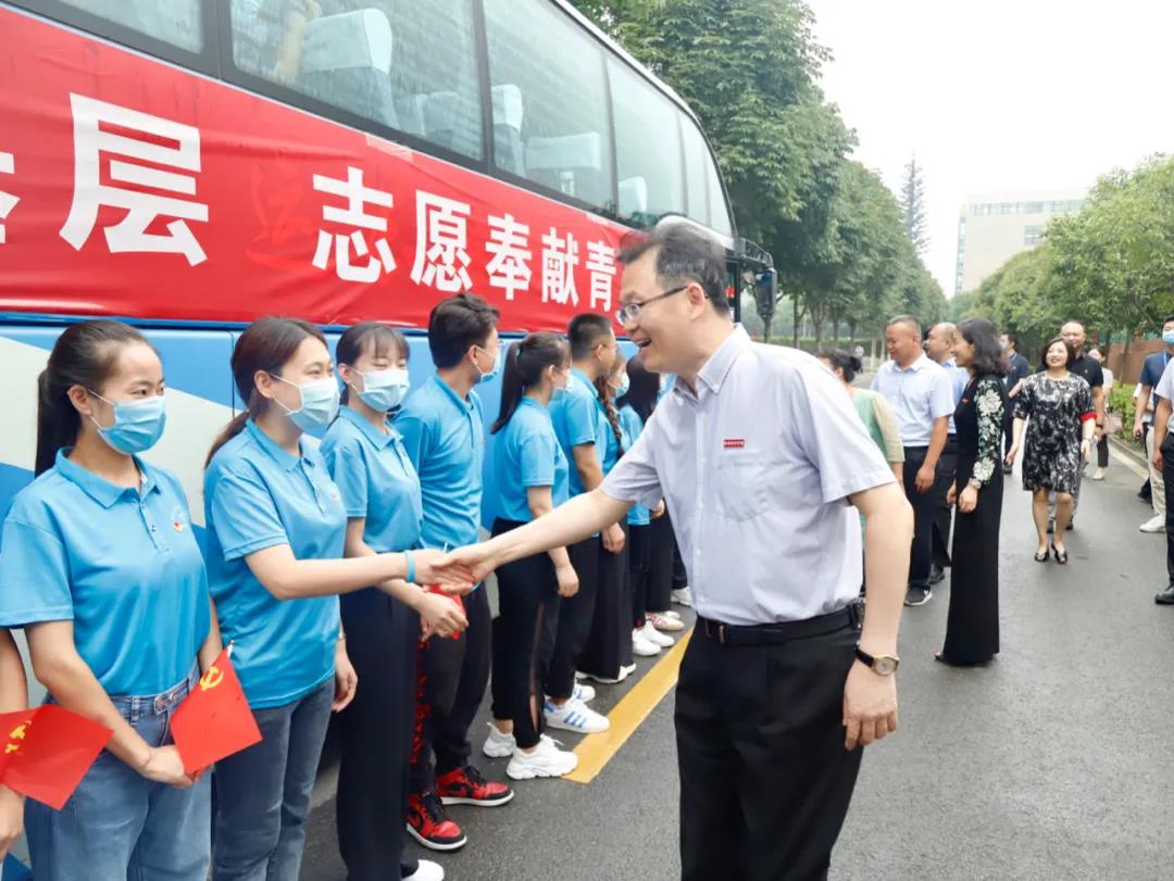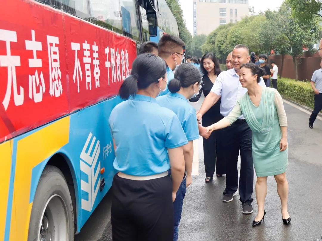今朝我欲乘风去,大展雄才高万仞。出征仪式后与会领导亲切送别西部计划志愿者。