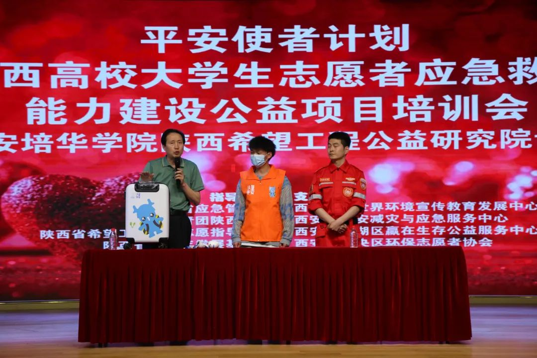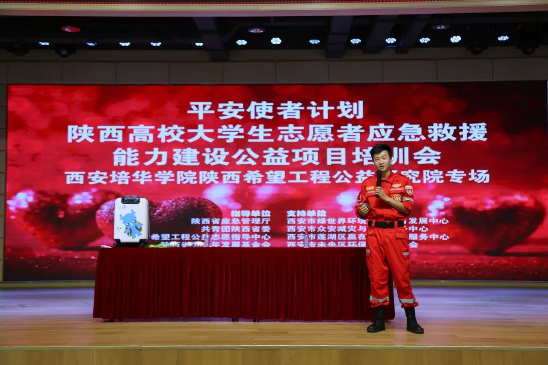 为了增强大学生应急救灾经验,提高大学生自救互救能力,426日,西安培华学院青年志愿者联合会在恒友楼组织开展了平安使者计划 · 陕西高校大学生志愿者应急救援能力建设公益项目培训会培华专场活动。