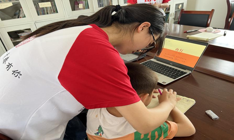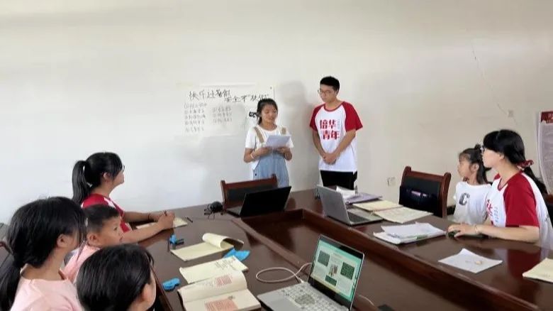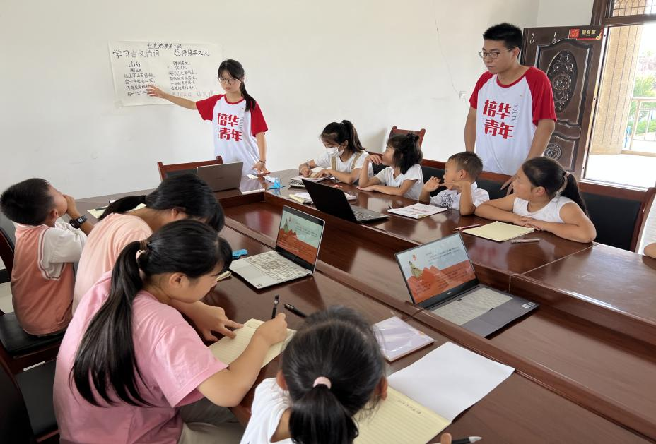 为传承文化经典,提高当地中小学生国学素养,实践队队员决定开设品味经典诗词课程。课堂上,实践队队员带领小朋友们学习《山行》和《赠刘景文》两篇诗词。实践队队员通过诗词解析细致讲解,将诗词内容娓娓道来,深入人心。小朋友们凭借对诗词的深刻理解、以高亢嘹亮的声线齐声诵读,进一步加深了对经典诗词的兴趣以及浓厚氛围。