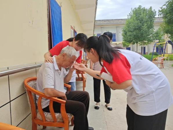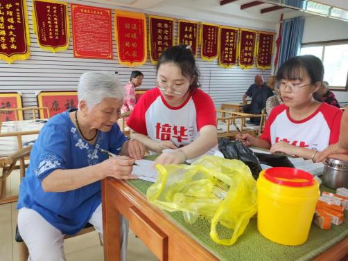 医心护梦社会实践队于7月18日走进尧山养老院开展暑期“三下乡”社会实践活动。队员们为老人们打扫卫生、测量血压、表演节目,并和他们耐心的聊天,给他们单调的生活增添了欢笑与温暖。队员们还慰问了院内的老党员和百岁老人,聆听他们的入党初心以及过往经历。通过此次实践活动,弘扬了“尊老、敬老、爱老、助老”的传统美德,让老人们充分感受到社会大家庭的关爱和温暖,同时也展现出了新时代培华青年蓬勃向上的精神风貌。
