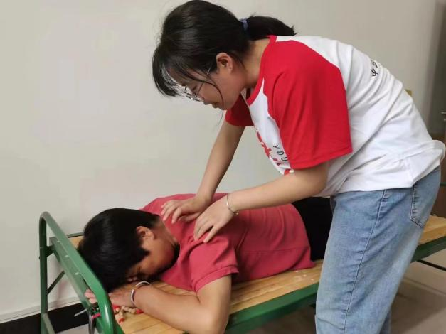医心护梦社会实践队于7月15日在池阳村党群服务中心开展主题为“义诊惠民生,医疗送健康”的定点义诊活动,旨在缓解村民身心的不适感,向他们普及相关基础健康知识。活动内容包括基础问诊、测量血压、按摩、针灸、艾灸等,不少村民都表示队员们的手法很好,经过按摩或艾灸之后全身都轻松很多,大大缓解了疲惫感,并对队员们表示感谢和鼓励,同时也表达了殷切的希望。