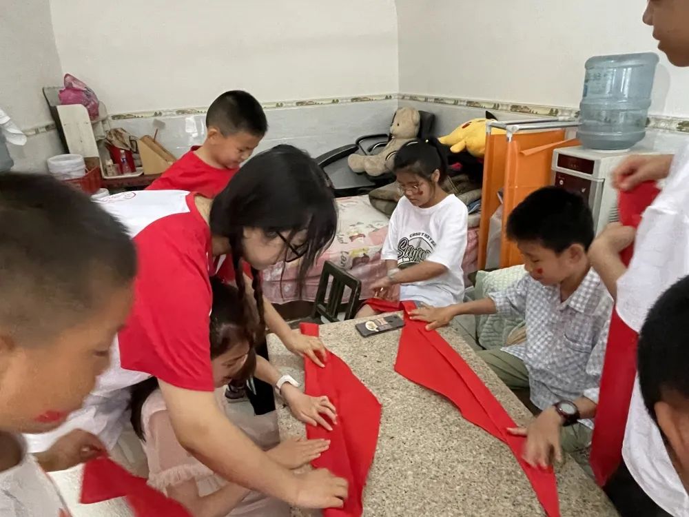 近日西安培华学院"益启爱"志愿服务队通过四史小故事、素质拓展小游戏、深入自然观察小动物、教授小朋友佩戴红领巾等形式,与孩子们一同以最普实的方式丰富孩子们的内心世界。