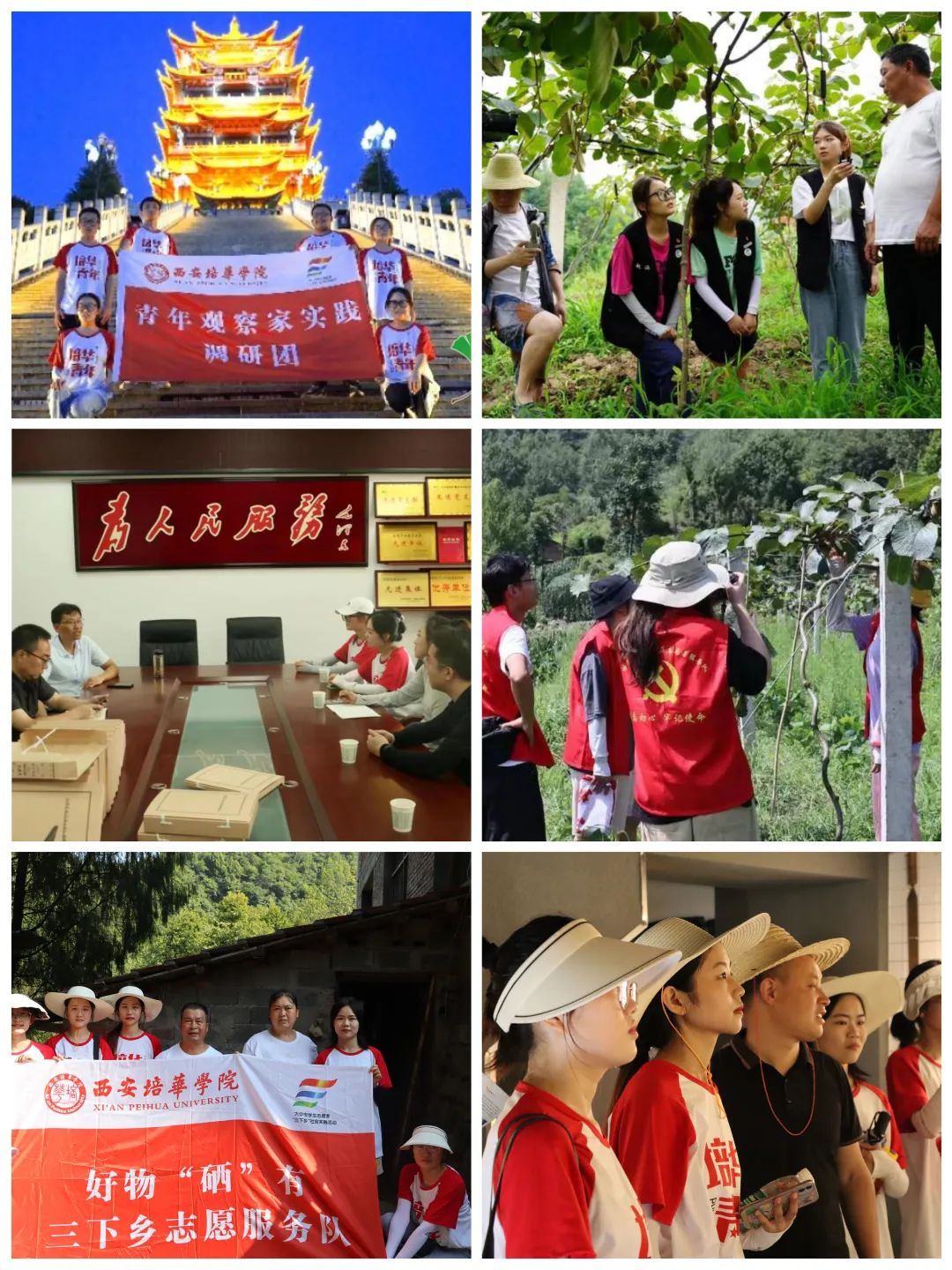 2022 年,为积极助力乡村振兴,充分发挥校地联动实践育人的重要作用,在安康团市委、汉阴县委县政府、乡村振兴局、团县委、县妇联等有关部门的大力支持下,我校围绕理论宣讲、法律科普、科技兴农、乡村健康、爱心支教、产业调研等实践方向,成立了西安培华学院青春聚力乡村振兴暑期“三下乡”汉阴专项实践团,下设 28 支 实践服务队,实践足迹遍布汉阴县的 13 个乡镇、28 个村,服务村民近万人。在蓝天白云和绿水青山中,也留下了许多培华青年难忘的青春印迹。