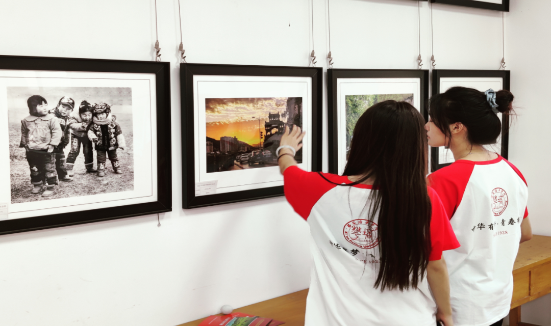 图为智小信调研团成员观看陇县优秀摄影作品