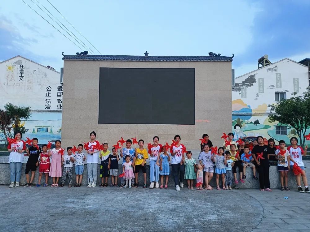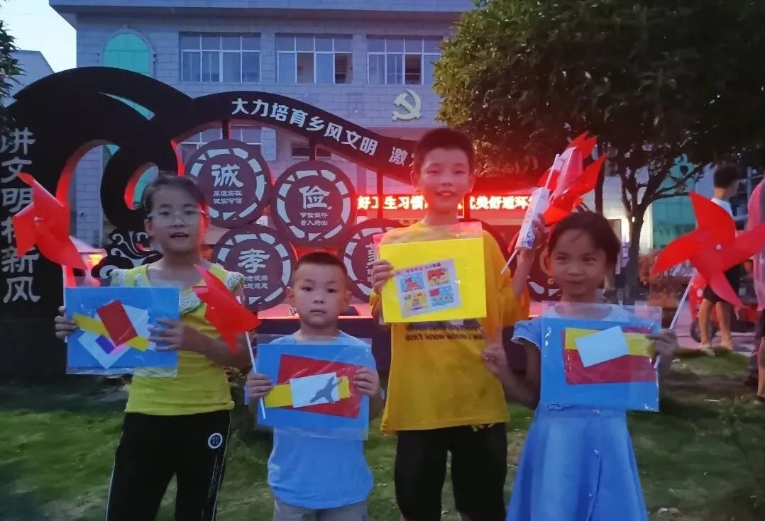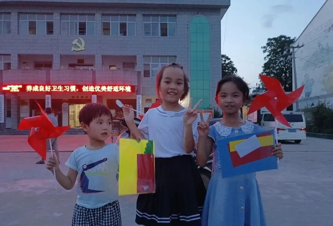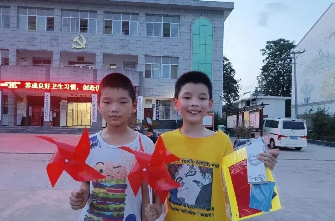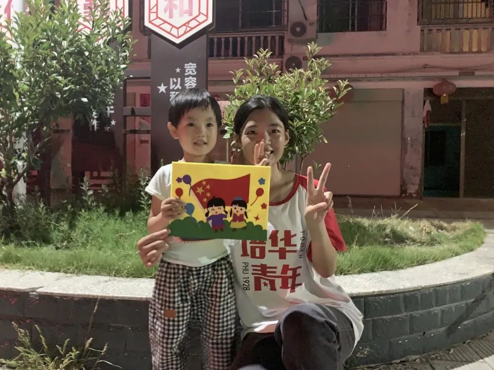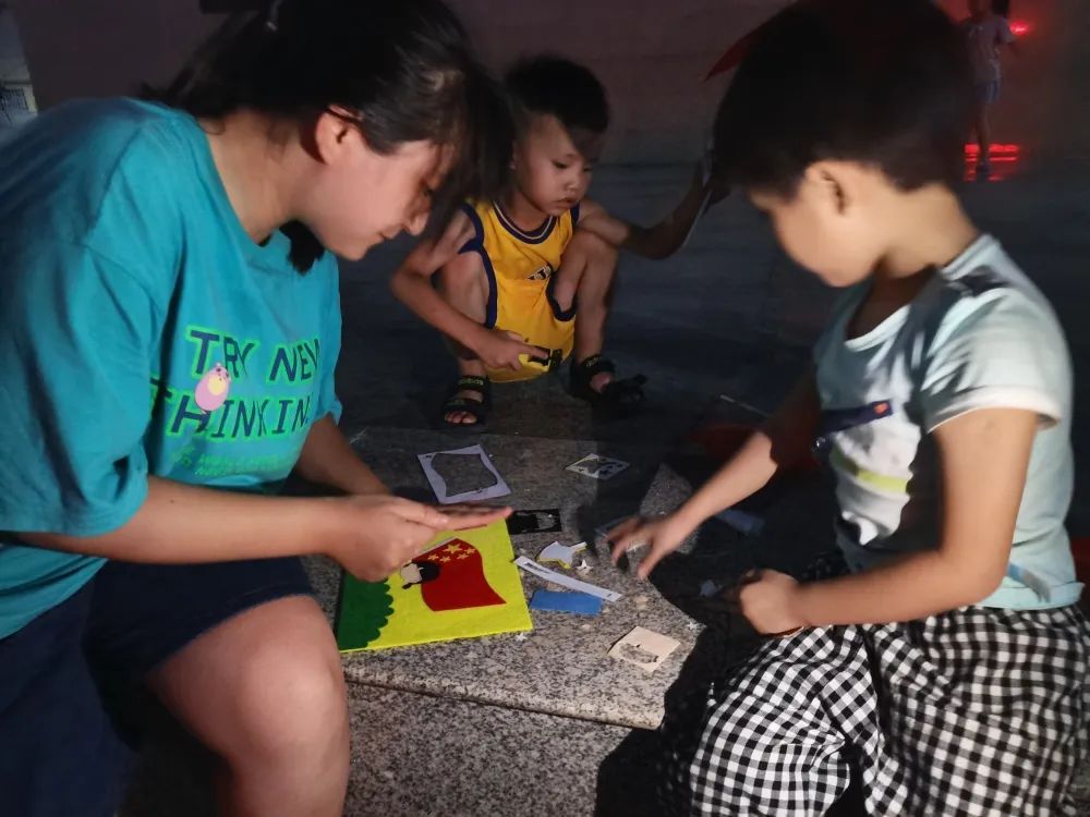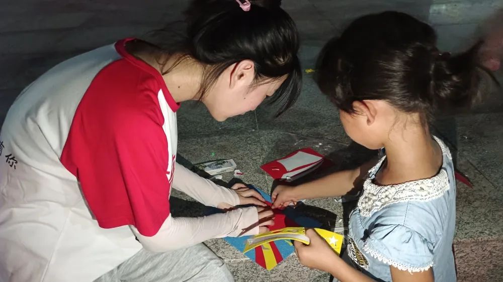 晚风轻拂,月牙稍挂,孩童微笑。为了与村民进一步交流,实践队在广场上进行了一系列友谊交流活动。活动后,将精心准备的小风车和具有实践队特色的书签分发给周围小朋友,同时在广场上与小朋友们一起制作了爱国系列的手工贴画,让小朋友们积极参与其中。热闹的氛围,耐心的队员,使小朋友的脸上也洋溢着开怀的笑容。
