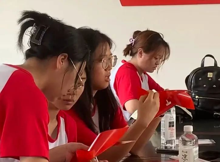 8月17日,西安培华学院“红色鱼米实践队”队员提前制作小风车及毛毡画,为下午的活动做好准备。