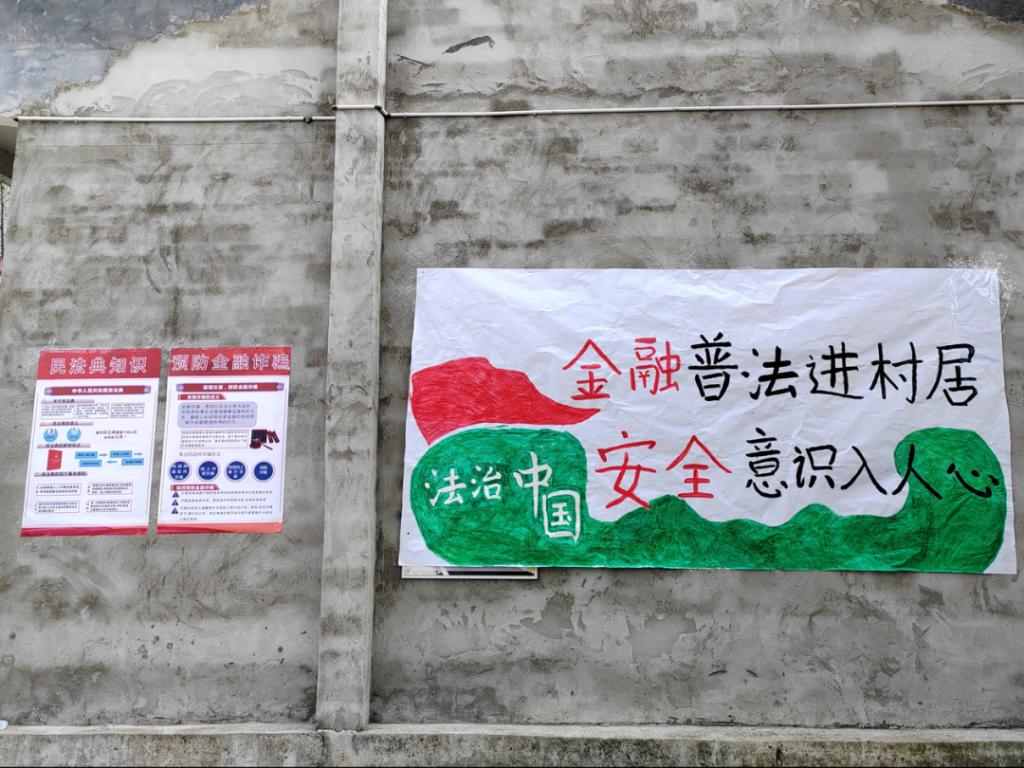 此次金红村实践之行的主要目的之一就是做好当地金融诈骗的宣传工作,向村民们普及金融法律知识。基于此目的,团队成员首先在金红村展开了问卷调查,汇总调查结果,并进行了全面分析,基于调查问卷的分析结果,开展了“金融普法宣讲会”,为村民讲解金融法律知识,解答村民有关金融法律法规的疑惑。团队成员还为金红村绘画、制作了金融宣传海报,设计完成了金融普法宣传墙。同时,队员们向村民分发宣传手册,将金融知识送到群众身边,助力群众提高金融风险防范意识,有效助推金融知识下乡,以青年学子力量助力乡村振兴。