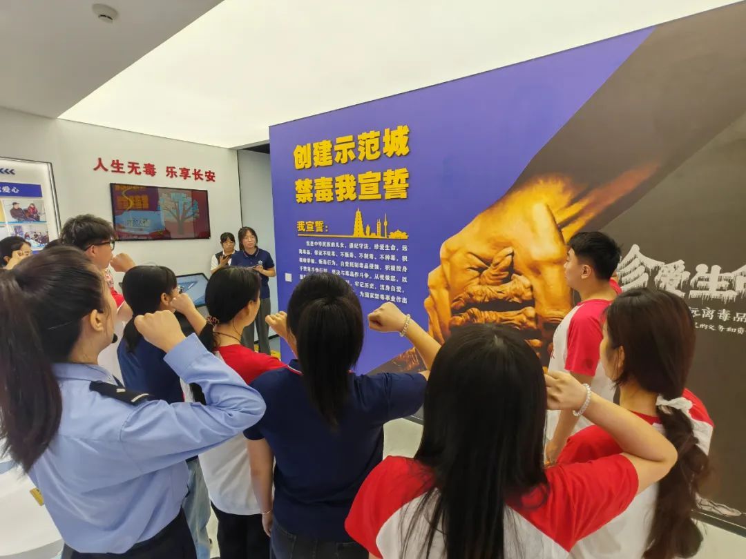习近平总书记曾说:“禁绝毒品,功在当代,利在千秋 。”毒品问题关系到国家和民族的兴衰存亡,禁毒工作是一项长期而艰巨的任务,需要全社会的共同努力。为增强大学生禁毒意识、普及禁毒知识,7月7日,西安培华学院无“毒”防线普法先锋队走进西安市雁塔区防毒宣传中心,开展“以青春之名筑牢无毒防线”学习活动。