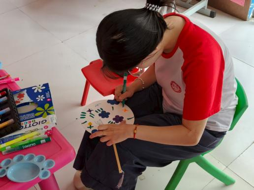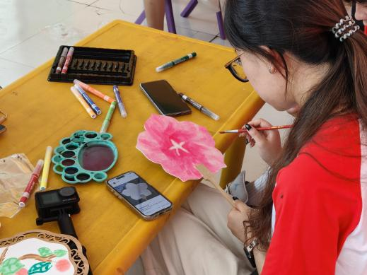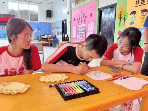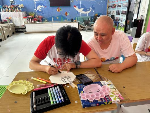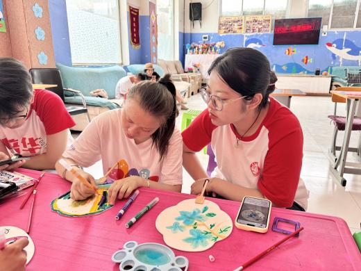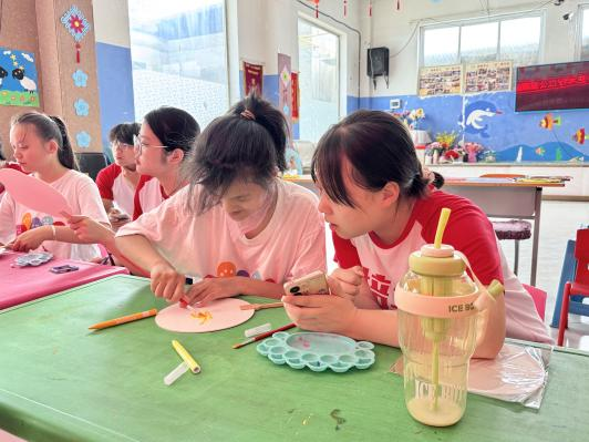 活动结束,志愿者表示:“以前总觉得要‘教会’他们什么,现在才明白,我们只是他们的‘翻译官’。把那些藏在眼睛里、手指间的悄悄话,变成扇面上的色彩而已”。颜料或许会褪色,夏天终将过去,但那些在画室里的瞬间——孩子第一次主动伸出的手、颜料蹭到鼻尖的笑声、扇面上歪歪扭扭却无比真诚的线条早已在我们心里,酿成了比夏天更绵长的记忆。