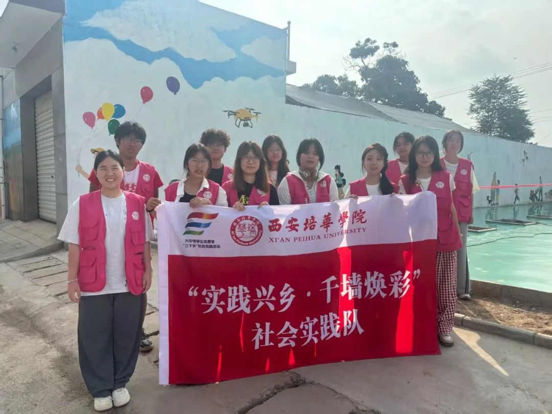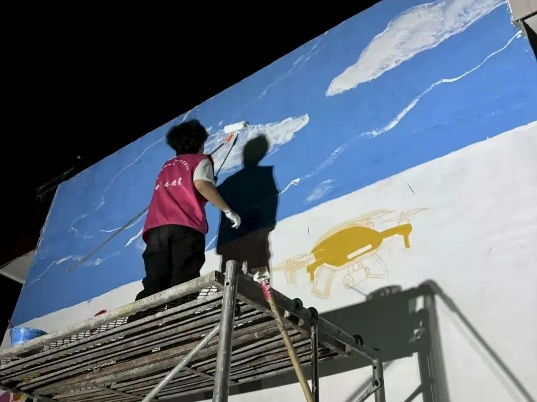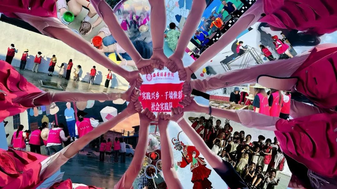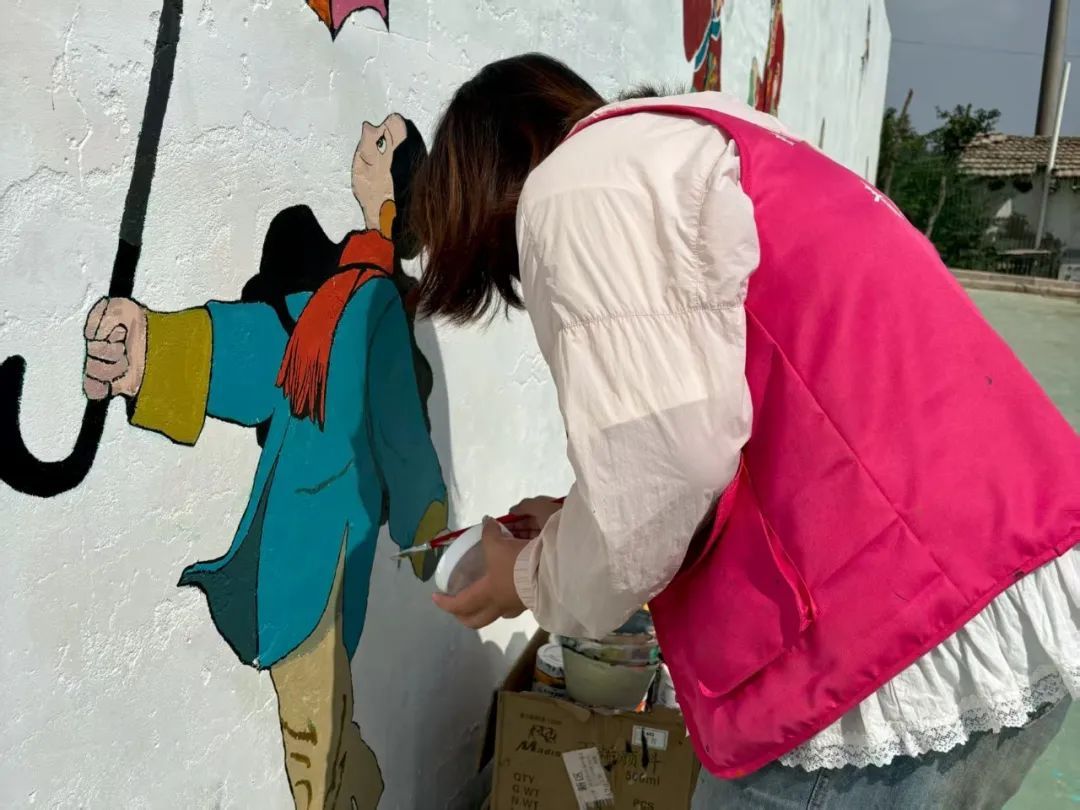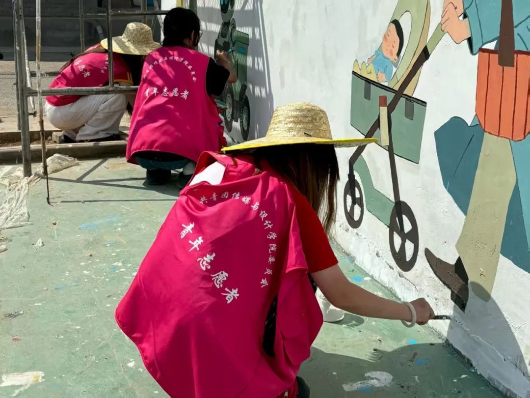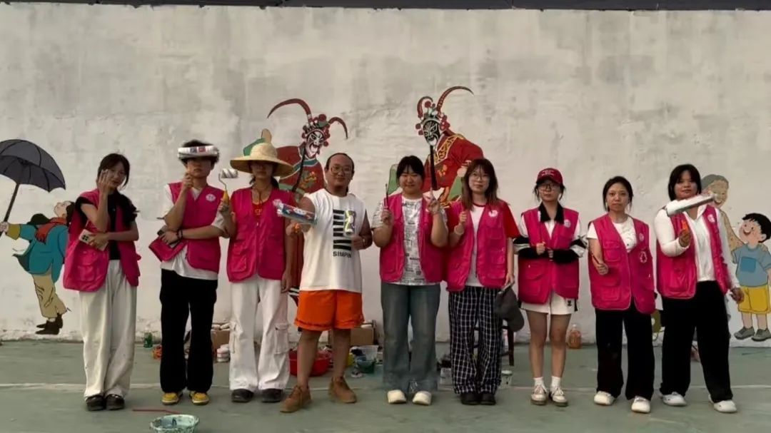7月10日,实践兴乡·千墙焕彩社会实践队的墙绘任务圆满收工!短短的一周内,队员们带着颜料穿梭街巷,从晨光到暮色,画笔摩擦墙面的声响,成了野狐坡村落夏日里最特别的絮语。如今,广场上那素净的墙体蜕变成鲜活的“生活剧场”,每一笔都藏着居民熟悉的日常,也印着团队与社区共绘家园的温情。