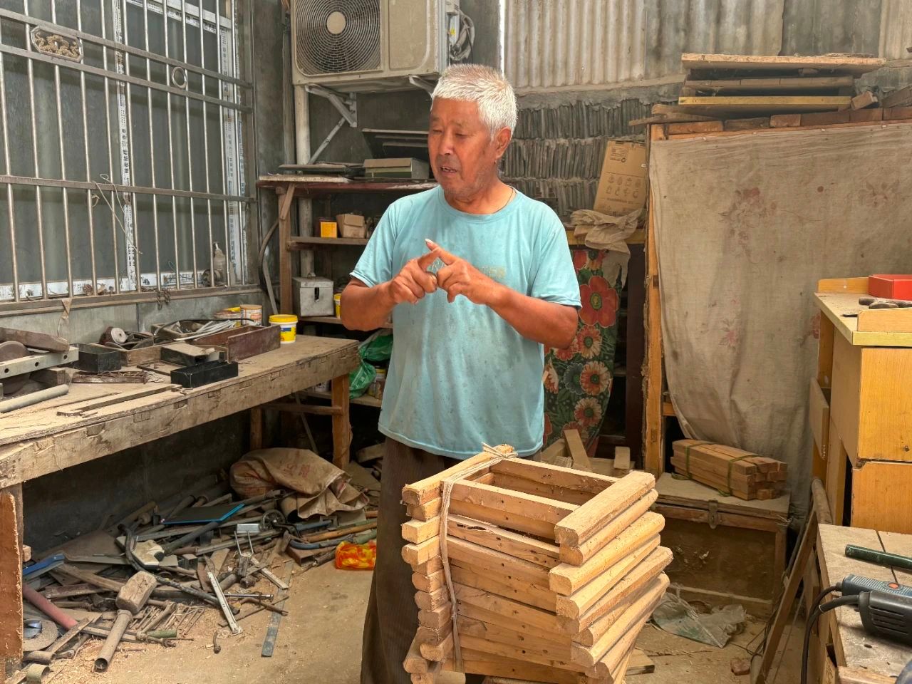 这位 80 岁的老木匠从事木匠行业已有六十余载,一手精湛的木匠手艺在当地小有名气。走进老木匠的木工房,一股淡淡的木头清香扑面而来,房间里整齐地摆放着各种刨子、凿子、锯子等工具,每一件都透着岁月的痕迹。老木匠虽然年事已高,但精神矍铄,谈起自己的手艺,眼中闪烁着光芒。老匠人说:“我这一辈子,就跟木头打交道了。从年轻时候起,就跟着师傅学手艺,那时候啥都不懂,就知道闷头干。现在老喽,眼睛花了,手也没那么稳了,可只要还能动弹,就舍不得放下这手艺。这每一块木头,都有它自己的性子,得顺着它来,才能做出好物件”。