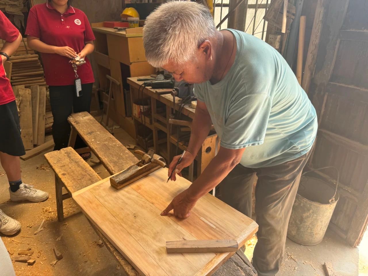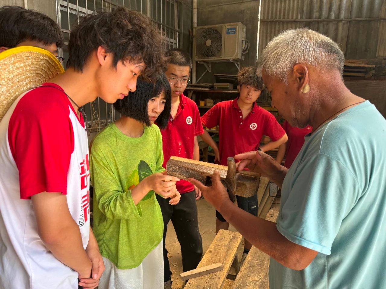“这手艺可不是一天两天能练成的,得有绣花般的耐心、磐石般的毅力,还要用全部心思去琢磨”。老木匠一边专注地操作,一边向队员们娓娓讲述着自己年少时学习木匠手艺的艰辛经历。他感慨道,在物质匮乏的过去,木匠是一个非常受人尊敬的体面职业,盖气派的房子、做精致的家具都离不开技艺精湛的木匠。八十岁了,做木匠也有大半辈子了。现在的年轻人,都不爱学这手艺,觉得又苦又累还不挣钱。可在我看来,这不仅仅是个手艺,更是一门艺术。每一件作品,都倾注了我的心血,看着它们,就像看着自己的孩子一样。但随着时代飞速发展,冰冷的机械化生产逐渐取代了充满温度的手工制作,愿意沉下心来学木匠手艺的年轻人越来越少,这让他时常感到痛心不已。对老木匠而言,工匠精神从不是什么宏大的词,就是把手里的每一件活儿做扎实,让木头的纹理里长出岁月的温度——这是他与木头相守一生的承诺,也是工匠精神最朴素的模样。