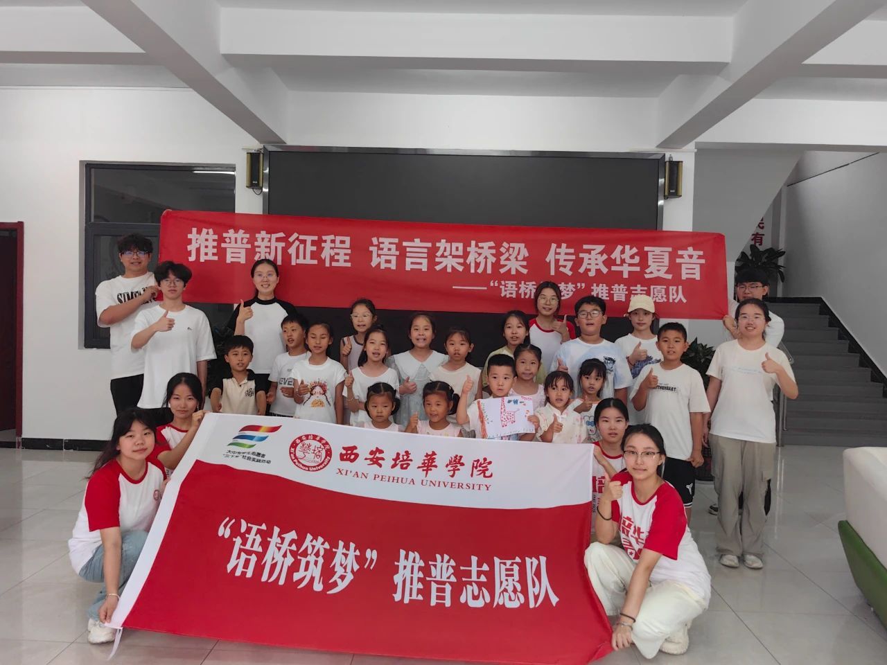普通话是中华民族的共同语言,是连接五湖四海的文化纽带,更是传承千年文明的重要载体。在蝉鸣声声的盛夏,西安培华学院语桥筑梦志愿服务队怀揣着满腔热忱与青春力量,走进韩城市惠丰园社区,开启了一场充满欢笑与温暖的为期十天实践之旅。实践的核心主题是“推普新征程,语言架桥梁,传承华夏音”,他们以趣味为引、以互动为桥,通过寓教于乐的方式,带领社区的小朋友们推开普通话的大门。让标准的发音化作灵动音符,让规范的表达成为交流的翅膀,在童声朗朗中,播撒语言的种子,助力文化的传承与交融,共同书写属于他们的青春故事。