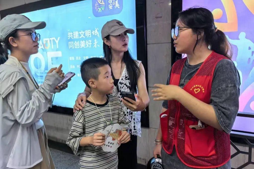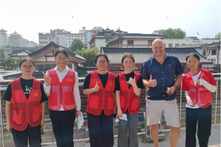 服务期间,“丝路语使”队员们承担了多项基础服务工作。从帮助游客购票、引导游客,到存包取包、安检,再到维持景区内部秩序,他们身着红马甲的身影穿梭在钟鼓楼间,成为一道亮丽的风景线。尤其是面对外国游客时,他们凭借多语言优势,提供精准指引,让中外游客都能感受到西安的热情与友好,仿佛是古城西安的温暖使者,用贴心服务传递着这座千年古都的温度。