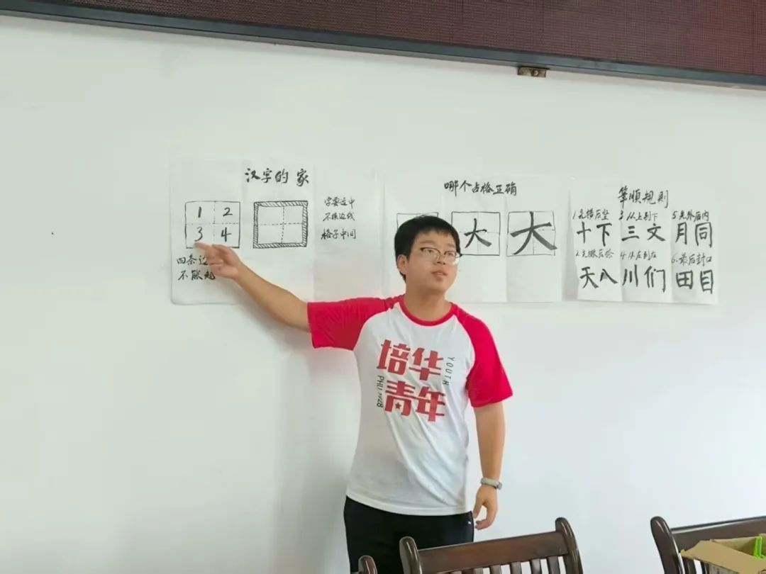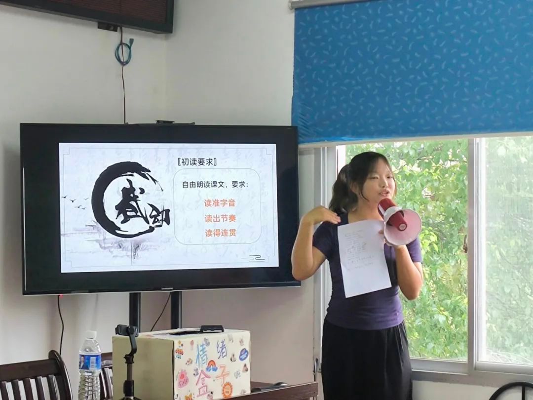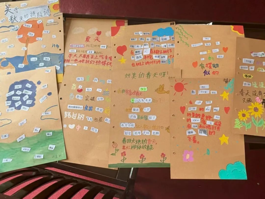 作为汉语言文学专业学子,枞心培伴小队绞尽脑汁让语文课堂充满趣味。趣味课堂用“精卫填海”“开天辟地”的简笔画教看图猜成语,孩子们在抢答中吃透典故;古诗课将《游子吟》编成手势舞,“慈母手中线”化作捻线动作,孩子们边跳边诵,让古诗有了温度;拼贴诗引导用旧报纸、落叶拼贴诗句,“山路牵着月亮走”的童言里藏着乡野诗意;朗诵课解析《少年中国说》的生僻字,结合家国情怀教朗诵,“少年强则国强”的声浪满是朝气。