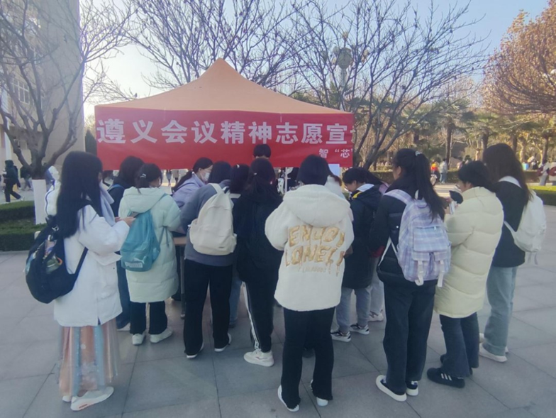 2023年12月7日,智“芯”先锋队在校园内开展了为期一天的校园宣传活动,主题为“弘扬遵义会议精神”。此次活动旨在深入挖掘和传承遵义会议的历史精神,引导同学们在学术和思想上更深入地了解这一历史事件,激发同学们的爱国热情和责任感。