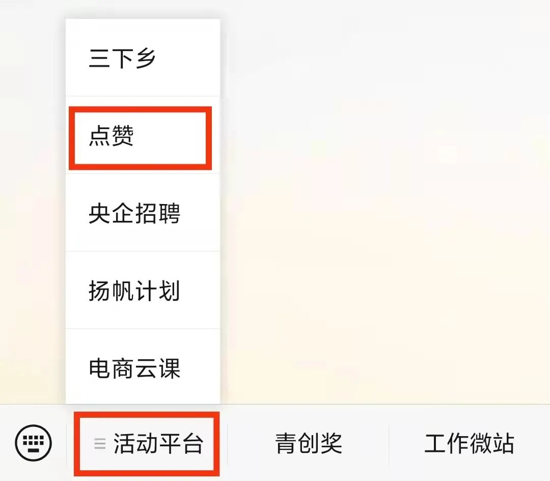 2、在关注后点击菜单栏“活动平台-点赞”,点击即可进行投票(每人每天在每个公众号可点击投票3次、每人在每个公众号上只能为1个作品点赞1次、两个公众号上的点赞数都计入总点赞数)