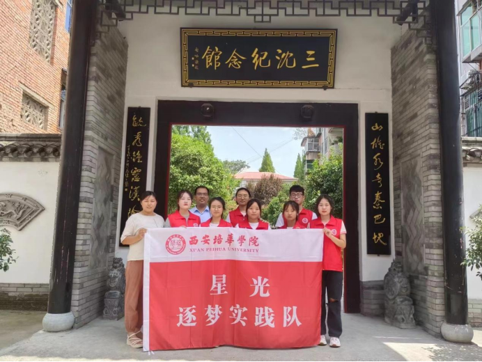 本次下乡活动的最后一站是当地的三沈纪念馆,星光逐梦实践队的队员们一起追寻大师的成长足迹,缅怀为民族文化事业做出杰出贡献的沈士远、沈尹默、沈兼士三位大师。在汉阴志愿者联合会赵会长的带领下,实践队员们走进具有江南庭院风格的阁楼式纪念馆,被院内的青砖、挑檐、天井、石雕鱼缸所吸引,这里既古朴、庄重,又典雅、幽静、独具汉阴钟灵毓秀的人文气息。这次研学参观详细了解三位大师生平,在纪念馆内彳亍,我们仿佛走过了他们的人生。对他们多了一份敬仰,对三沈精神、沈氏家训有了更深刻的认识和领悟,未来我们一定要发扬三沈精神,争做时代新青年。