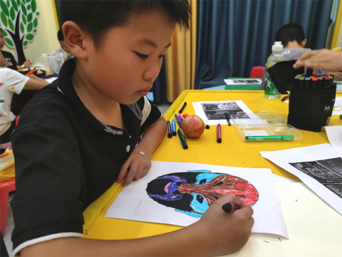 手工课上,我们为孩子们开展了一堂别开生面的剪纸课程,一张张彩纸通过孩子们的裁剪,一朵朵窗花,在我们的课堂绽放,寄托着孩子们对未来的美好期望。绘画课上,我们以金秋为题,小朋友们开放思维画出自己心中秋的模样。脸谱,是中国传统戏曲演员脸上的彩绘,通过老师的讲解与展示,小朋友用五颜六色的彩笔画出了他们眼中的脸谱,在课堂中感受了传统文化的魅力。