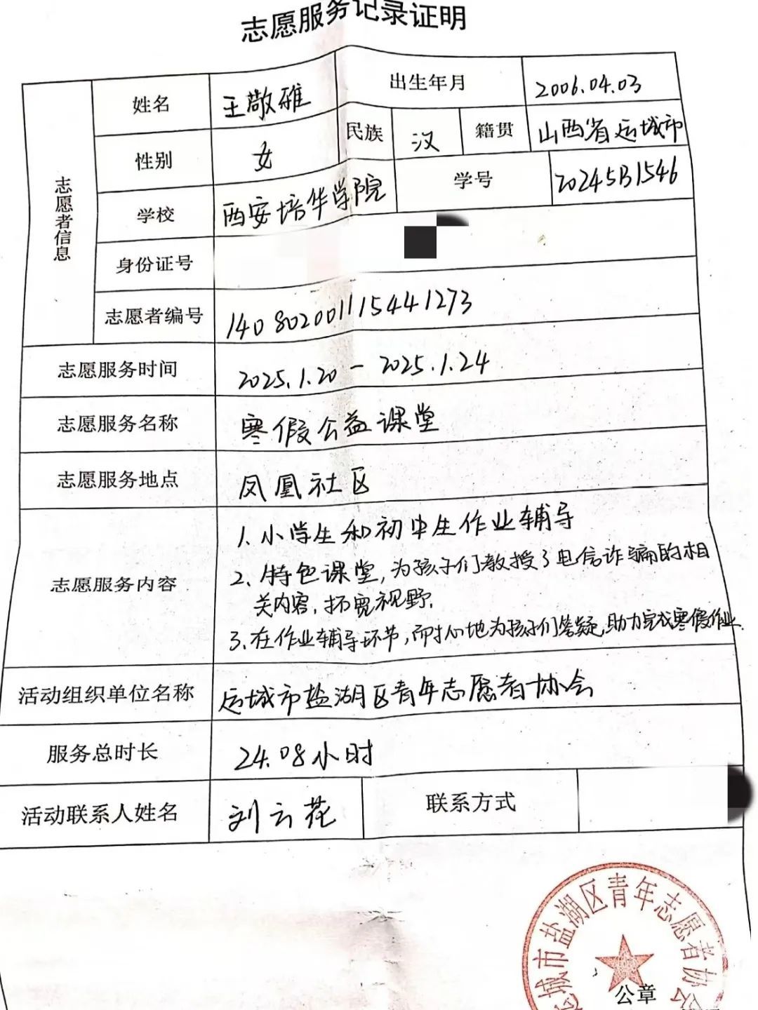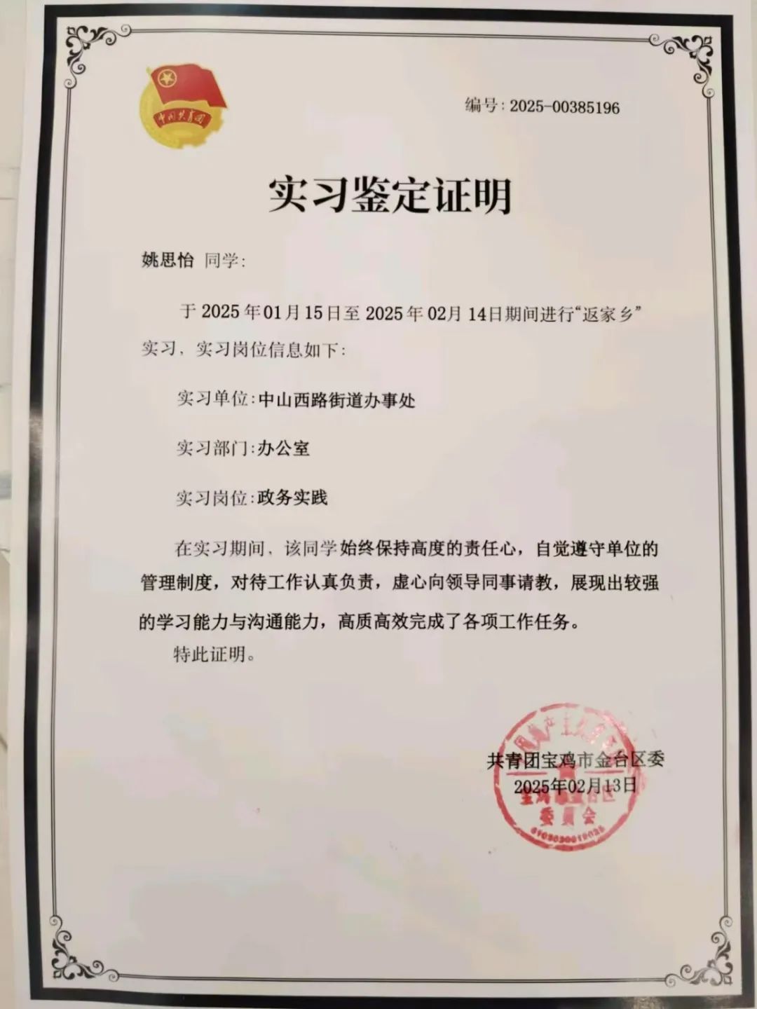 在大气污染治理中,走访调研取暖情况,宣传“清炉行动”;在区委会办公室,协助档案归类管理;还助力社区新春活动,引导居民有序挑选春联 ,并为大家讲解春联习俗。我在活动中展现出良好的沟通与组织能力,既推动环保工作,又增添了节日氛围,获得了实习鉴定证明,实践成果丰富。