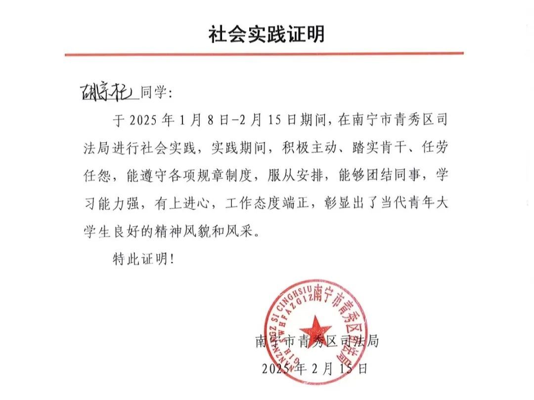 实践单位:南宁市青秀区司法局