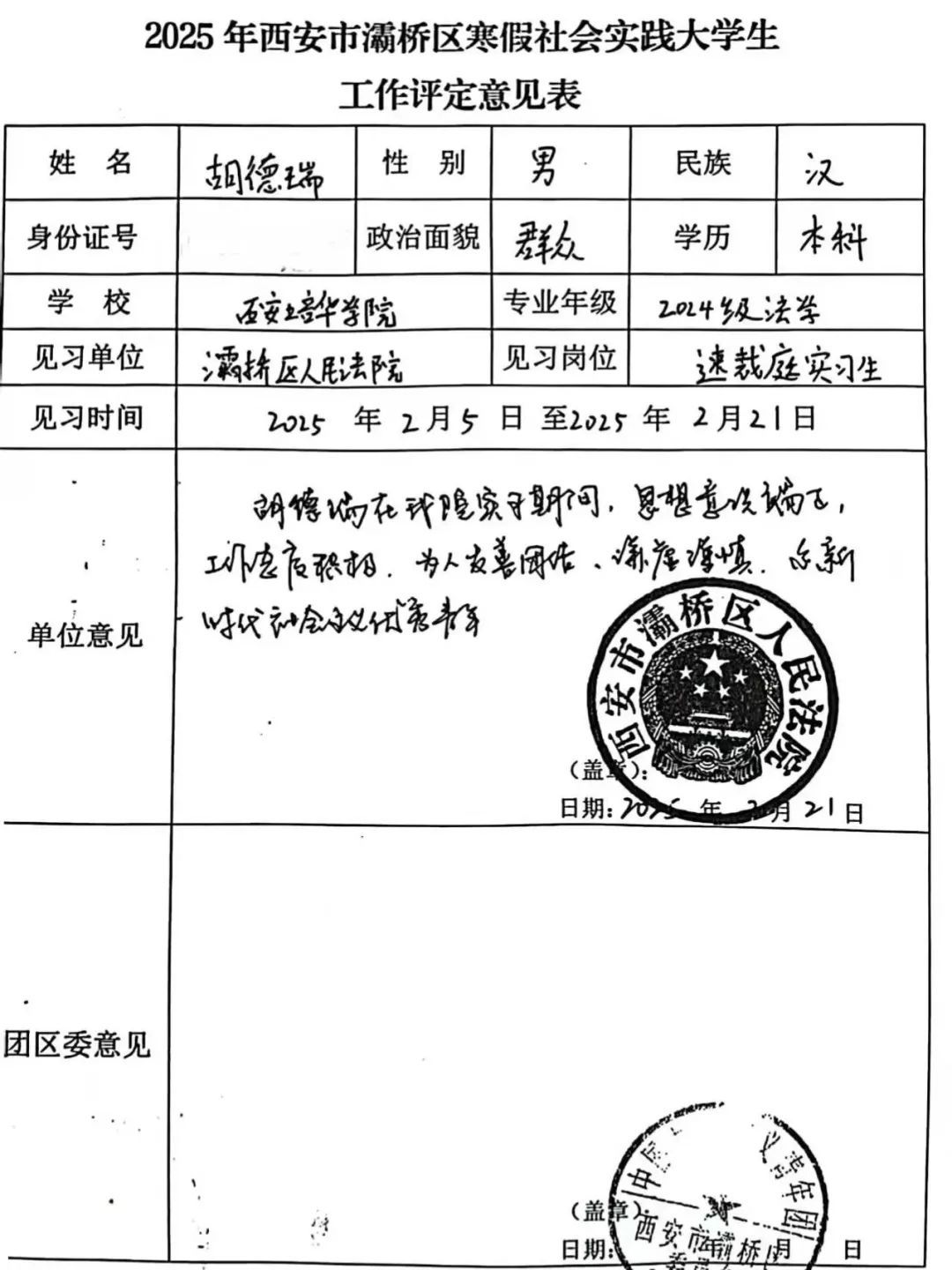 当亲手整理的案卷成为当事人维权依据,当参与撰写的判决书被盖上法院公章,我触摸到了法律的生命力。这份经历不仅让我掌握了卷宗编码、文书排版等实务技能,更让我理解,法律工作者的价值不仅在于熟稔法条,更在于用专业与责任架起通往公平的桥梁。