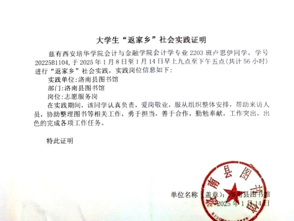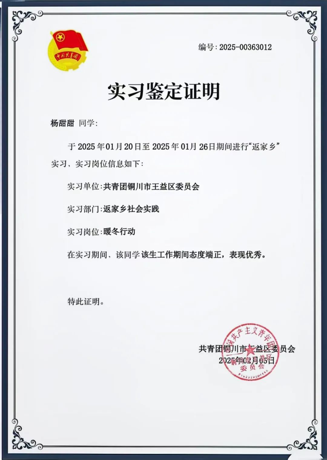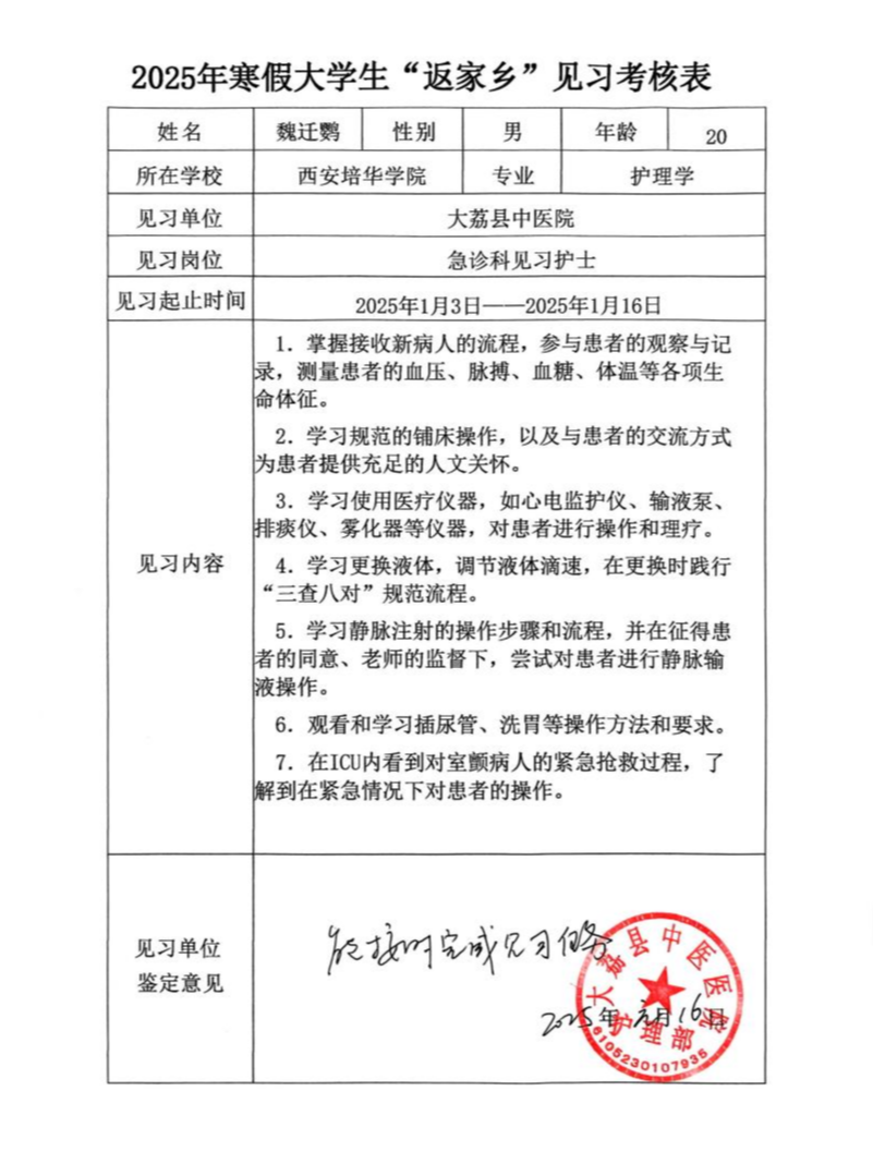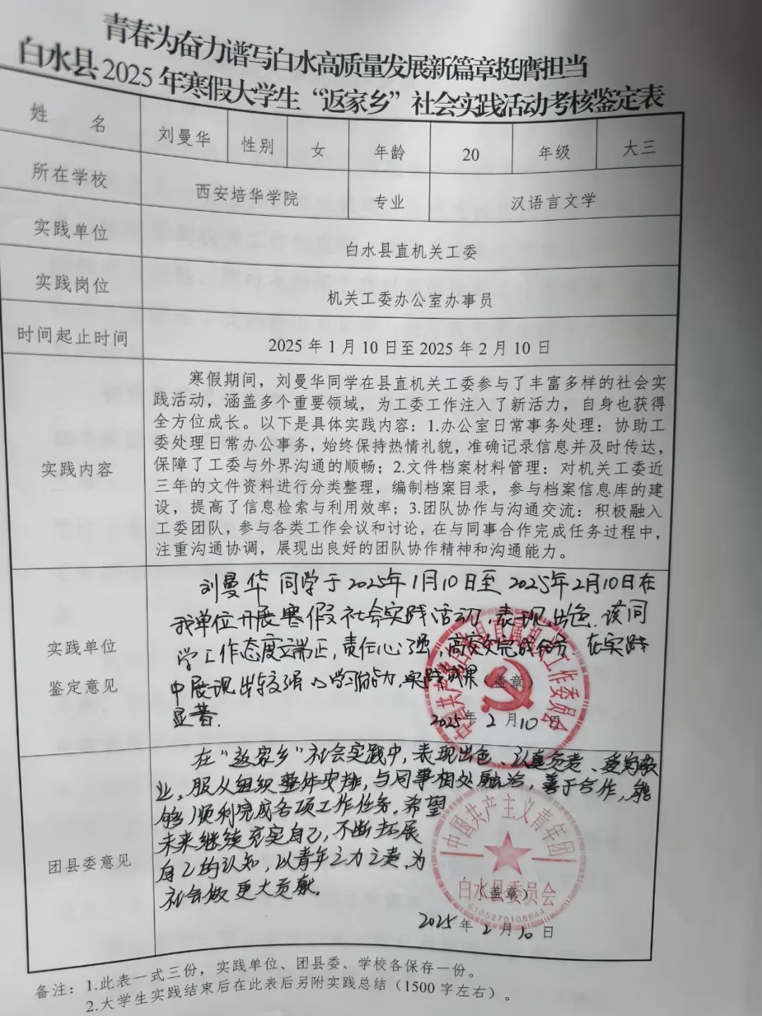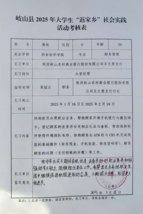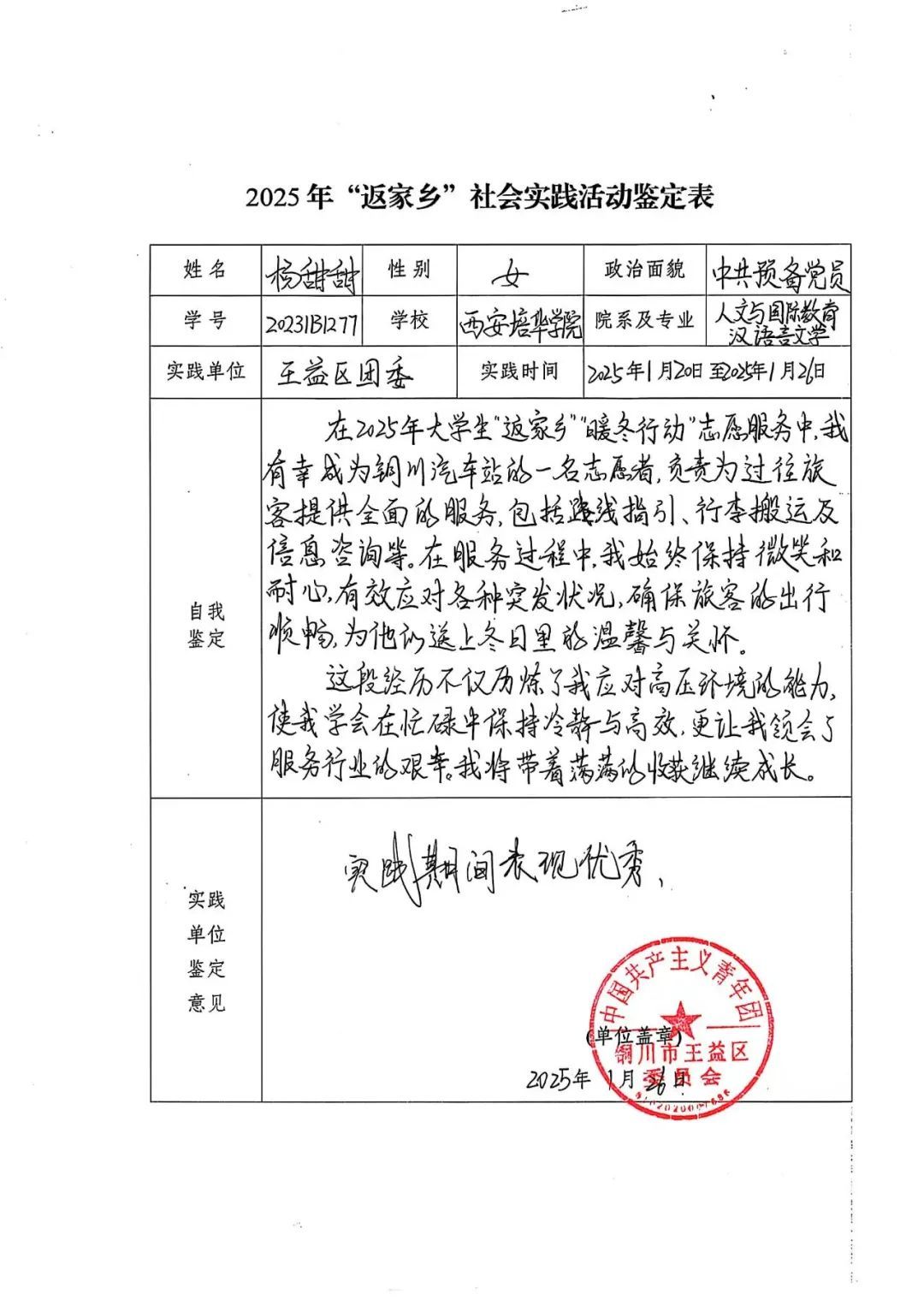 为响应时代号召,西安培华学院团委积极组织“返家乡”社会实践活动,为2025年寒假大学生打造实践平台。帮助引导学生树牢理想信念、提高社会化能力,激发投身基层、服务家乡的深厚情怀,推动共青团实践育人工作深度融入高校“大思政课”建设。
