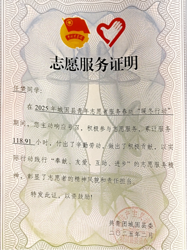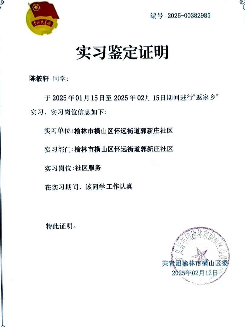 在为期30天的实践过程中,先后参与"横山区首届大学生晚会"物资发放、助残帮扶、民俗传承及扫雪除冰等多项工作,累计服务时长超过180小时,服务群众达200余人次。通过身体力行的实践,不仅为家乡建设注入青春活力,更在服务中深化了对基层社会的认知,实现了个人综合素质的全面提升。