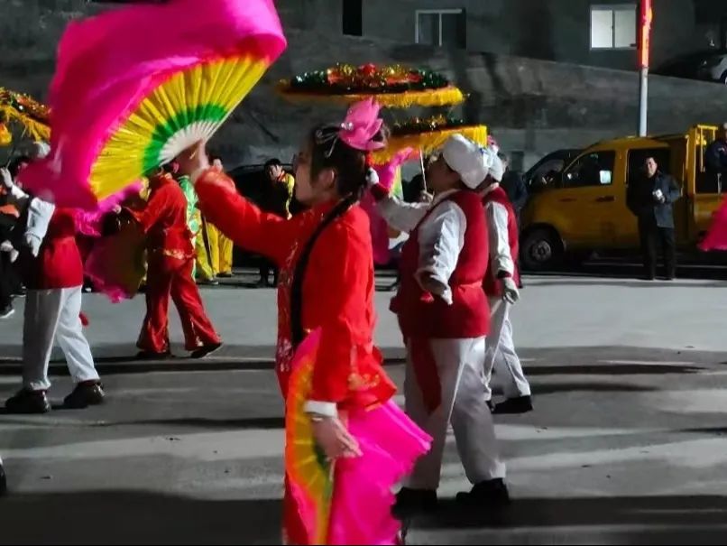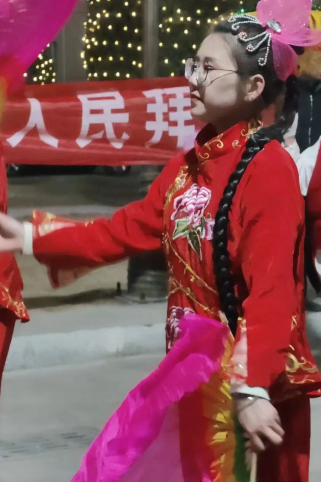 演出开始,她以欢快的节奏舞动起来,熟练地运用十字步、扭腰、摆臂等基础动作,步伐灵活多变,时而前进,时而后退,身体随着节奏左右扭动,手臂挥舞着彩绸,彩绸在空中划出优美的弧线。表演时,时刻留意整体的队形变化,与其他队员默契配合,通过不断穿插、交错。她每一个动作中,感染现场观众,让大家一同沉浸在欢乐的氛围里,感受陕北秧歌的独特魅力。