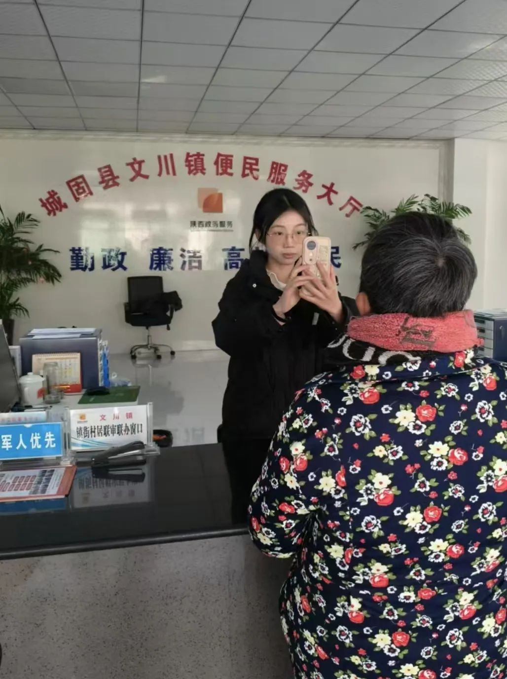 负责协助城固县2025年“春风行动”(文川镇)专场招聘会的会场筹办、登记企业信息、表格制作。认真学习便民服务大厅业务知识,协助文川镇便民服务大厅日常工作开展:接待引导、制作表格、信息审核等。大厅设有多个服务窗口,涵盖多个领域来满足居民日常生活的各种需求。引导村镇老人到对应窗口进行业务办理,搀扶行动不便的老人上、下台阶;帮助居民进行社会保险的人脸认证等手机上的操作;核对居民姓名、登记信息在表格后发放相应的资料。