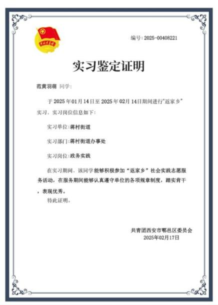 为响应时代号召,西安培华学院团委积极组织“返家乡”社会实践活动,为2025年寒假大学生打造实践平台。帮助引导学生树牢理想信念、提高社会化能力,激发投身基层、服务家乡的深厚情怀,推动共青团实践育人工作深度融入高校“大思政课”建设。