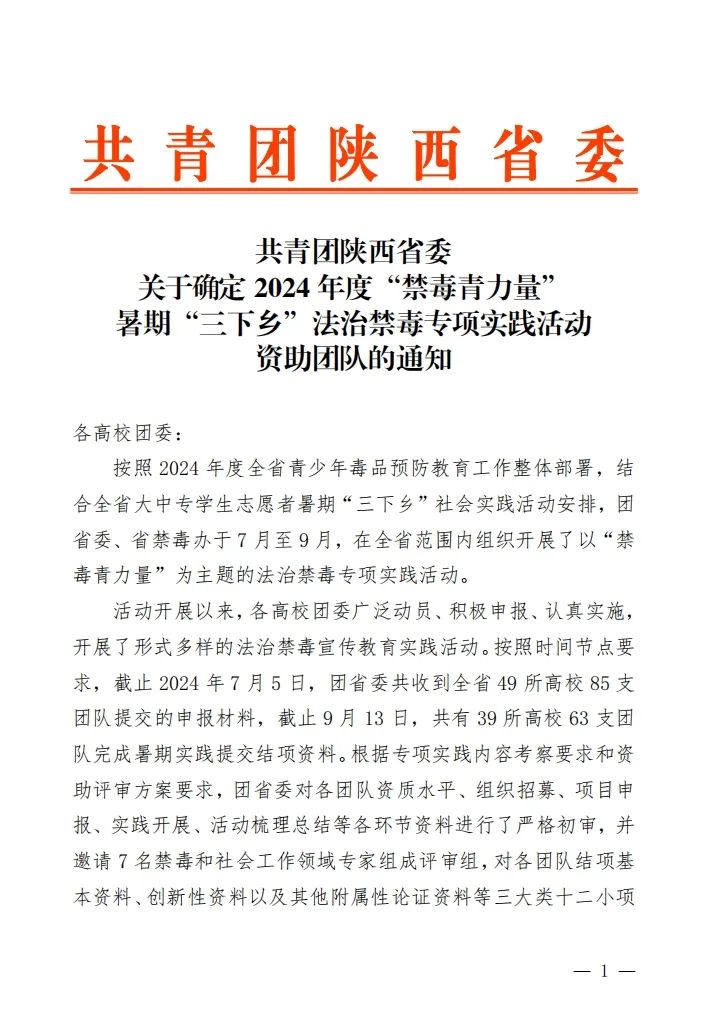 今年暑期,结合陕西省大学生暑期“三下乡”社会实践活动总体安排,省委宣传部、团省委等部门推出了“禁毒青力量”法治禁毒专项实践活动。